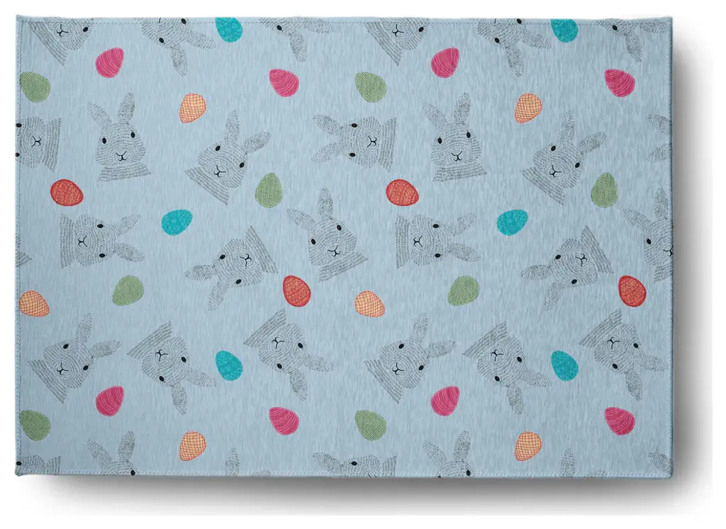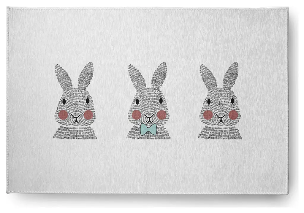 Enjoy a new style this season with a Bunny Fluffle Indoor/outdoor Rug from our Funky Junky Collection. Everyone will delight in the space defining design brought to your porch, patio, kitchen, or bathroom by this area rug. The artistic and colorful design is printed on a soft polyester base with a skid resistant backing, making it a perfect way to add color, flare and personality to any indoor or outdoor space. To clean, use a mild soap and lay flat to dry.