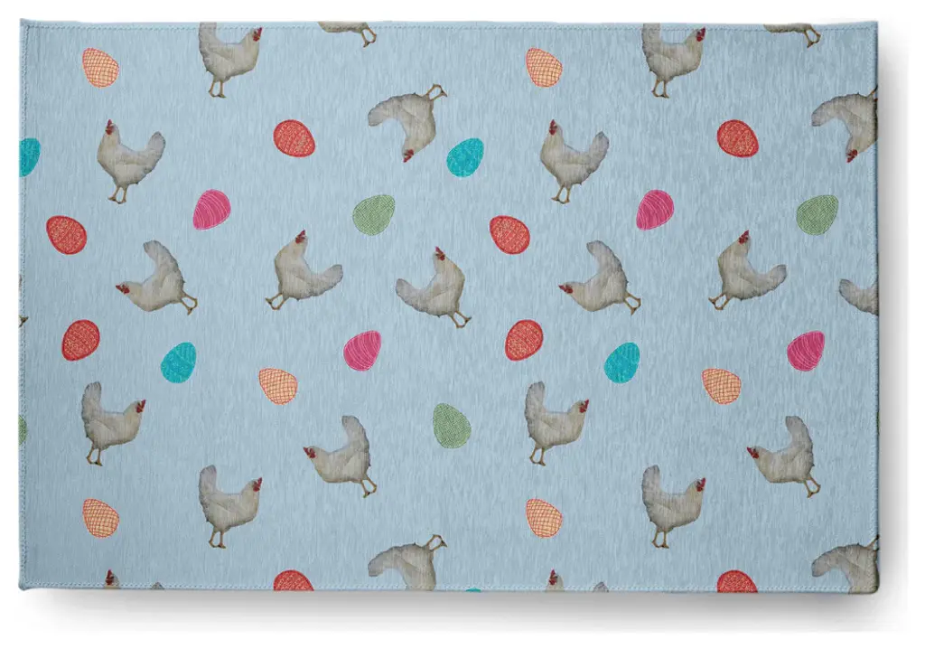 5' X 7' Chickens-Go-Round Easter Chenille Indoor/outdoor Rug