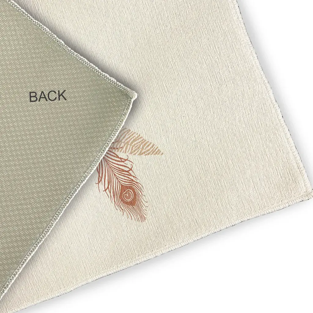 Liven up your decor with our trendy Feather Stripe Indoor/outdoor Rug from our Goals, Gourds, and Gathering Collection. Everyone will delight in the space defining design brought to your porch, patio, kitchen, or bathroom by this area rug. The artistic and colorful design is printed on a soft polyester base with a skid resistant backing, making it a perfect way to add color, flare and personality to any indoor or outdoor space. To clean, use a mild soap and lay flat to dry.