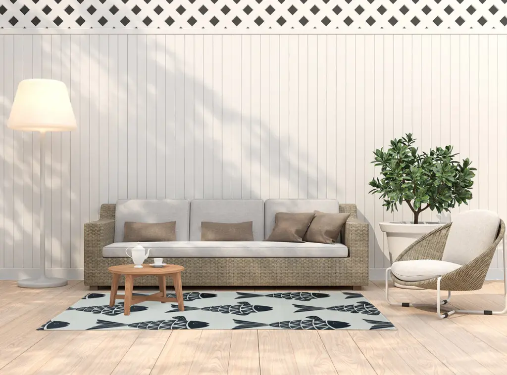 With the combination of sunny colors and beach style, you will love the Fish Tales Indoor/outdoor Rug from our Beach Vacation Collection. Everyone will delight in the space defining design brought to your porch, patio, kitchen, or bathroom by this area rug. The artistic and colorful design is printed on a soft polyester base with a skid resistant backing, making it a perfect way to add color, flare and personality to any indoor or outdoor space. To clean, use a mild soap and lay flat to dry.Soft underfoot, made of textured ChenilleStylish and functional to enliven your outdoor d?corSerged edgesCoated skid-resistant backingQuick-dry constructionStiff, lay-flat design