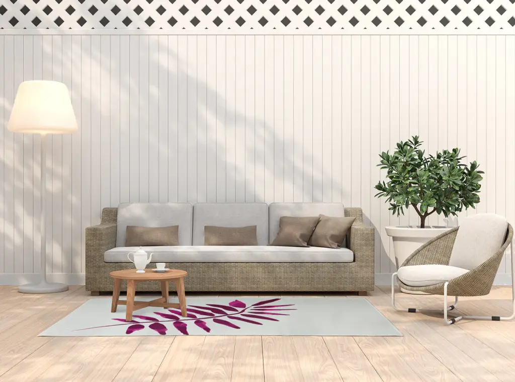 Create a lively tropical spirit and an inviting breezy atmosphere in your home with a Frond 2 Indoor/outdoor Rug from our Tropical Resort Collection. Everyone will delight in the space defining design brought to your porch, patio, kitchen, or bathroom by this area rug. The artistic and colorful design is printed on a soft polyester base with a skid resistant backing, making it a perfect way to add color, flare and personality to any indoor or outdoor space. To clean, use a mild soap and lay flat to dry.