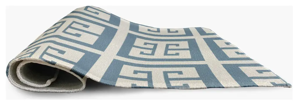 Complete your look with a Greek Key Patterned Indoor/outdoor Rug from our Subline Collection. Everyone will delight in the space defining design brought to your porch, patio, kitchen, or bathroom by this area rug. The artistic and colorful design is printed on a soft polyester base with a skid resistant backing, making it a perfect way to add color, flare and personality to any indoor or outdoor space. To clean, use a mild soap and lay flat to dry.Soft underfoot, made of textured ChenilleStylish and functional to enliven your outdoor d?corSerged edgesCoated skid-resistant backingQuick-dry constructionStiff, lay-flat design