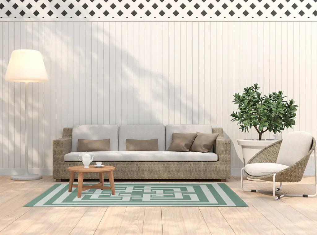 Create a cool coastal environment in your home with a Greek New Key Indoor/outdoor Rug from the Nantucket Collection. Everyone will delight in the space defining design brought to your porch, patio, kitchen, or bathroom by this area rug. The artistic and colorful design is printed on a soft polyester base with a skid resistant backing, making it a perfect way to add color, flare and personality to any indoor or outdoor space. To clean, use a mild soap and lay flat to dry.Soft underfoot, made of textured ChenilleStylish and functional to enliven your outdoor d?corSerged edgesCoated skid-resistant backingQuick-dry constructionStiff, lay-flat design