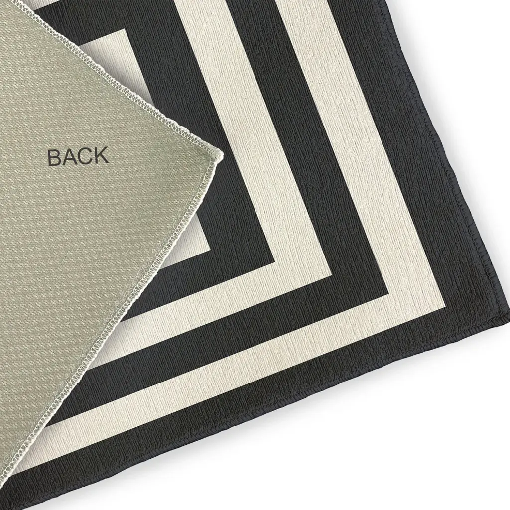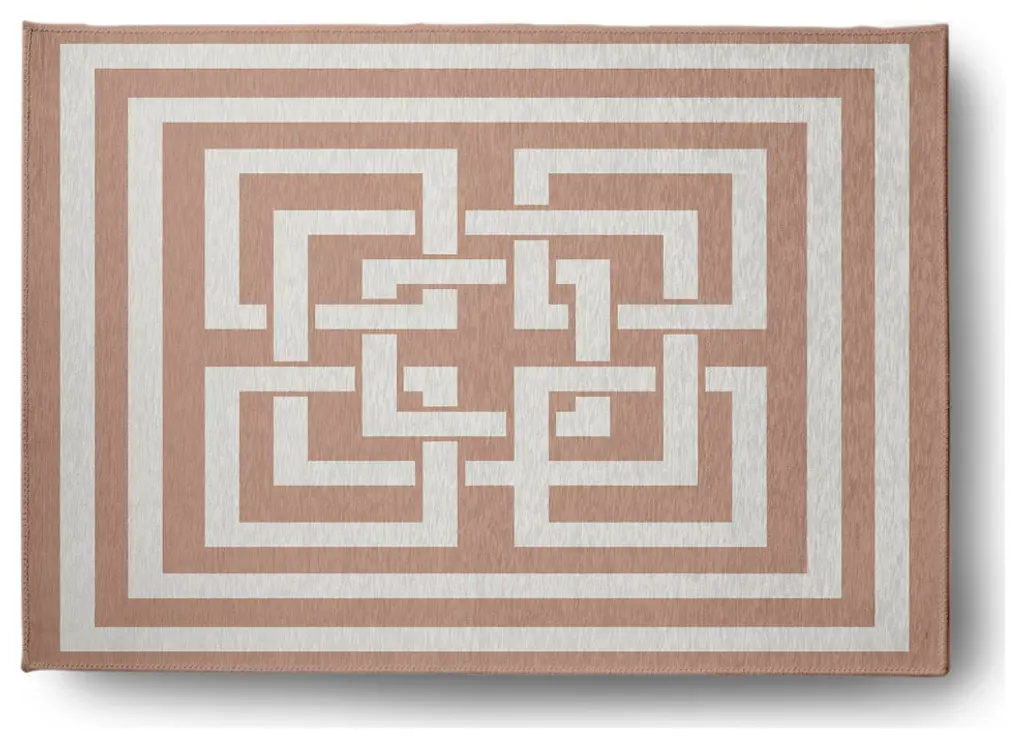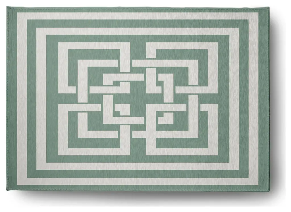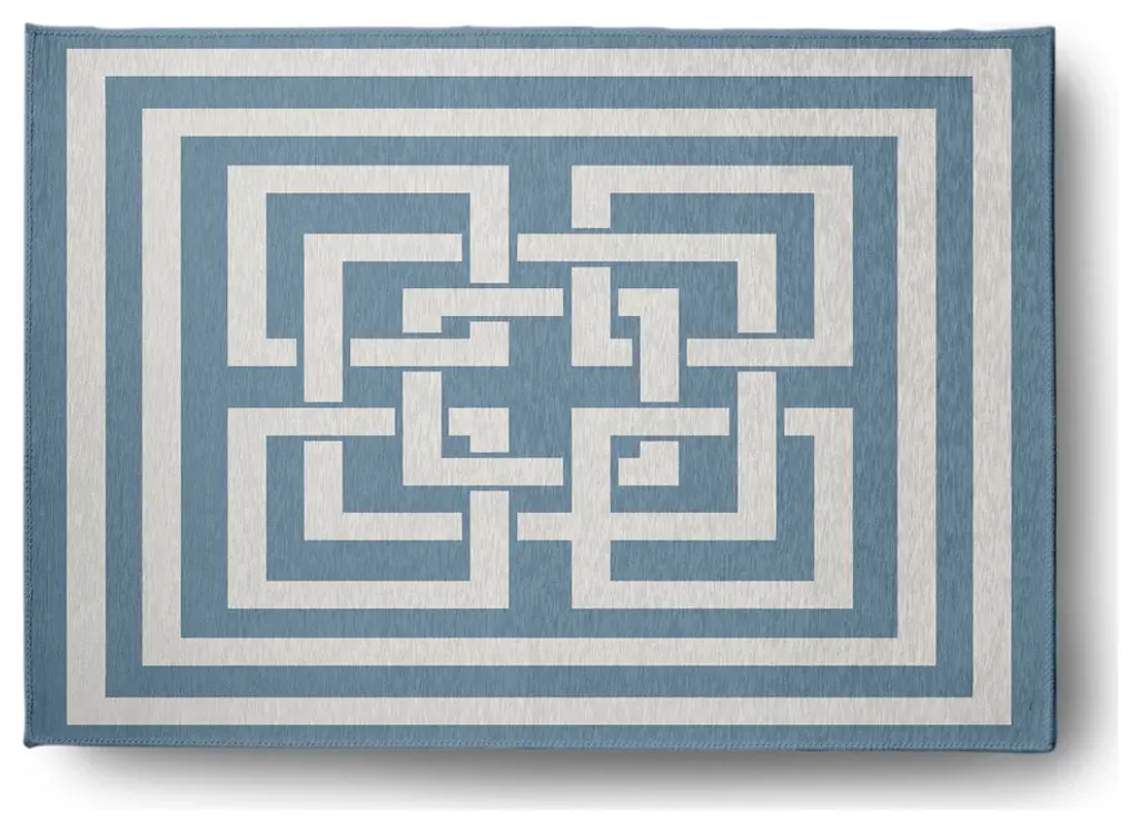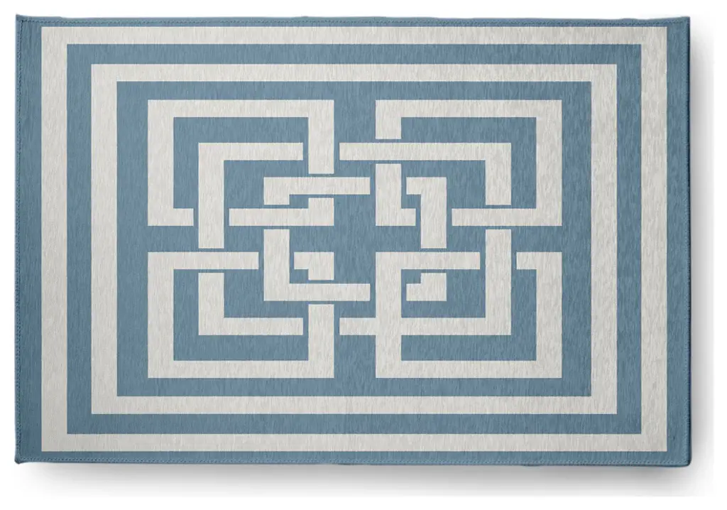 Create a cool coastal environment in your home with a Greek New Key Indoor/outdoor Rug from the Nantucket Collection. Everyone will delight in the space defining design brought to your porch, patio, kitchen, or bathroom by this area rug. The artistic and colorful design is printed on a soft polyester base with a skid resistant backing, making it a perfect way to add color, flare and personality to any indoor or outdoor space. To clean, use a mild soap and lay flat to dry.Soft underfoot, made of textured ChenilleStylish and functional to enliven your outdoor d?corSerged edgesCoated skid-resistant backingQuick-dry constructionStiff, lay-flat design