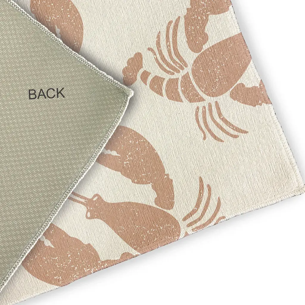 Bring the Seaside to your home decor with the Lobster Fest Indoor/outdoor Rug from our Nautical Nights Collection. Everyone will delight in the space defining design brought to your porch, patio, kitchen, or bathroom by this area rug. The artistic and colorful design is printed on a soft polyester base with a skid resistant backing, making it a perfect way to add color, flare and personality to any indoor or outdoor space. To clean, use a mild soap and lay flat to dry.Soft underfoot, made of textured ChenilleStylish and functional to enliven your outdoor d?corSerged edgesCoated skid-resistant backingQuick-dry constructionStiff, lay-flat design