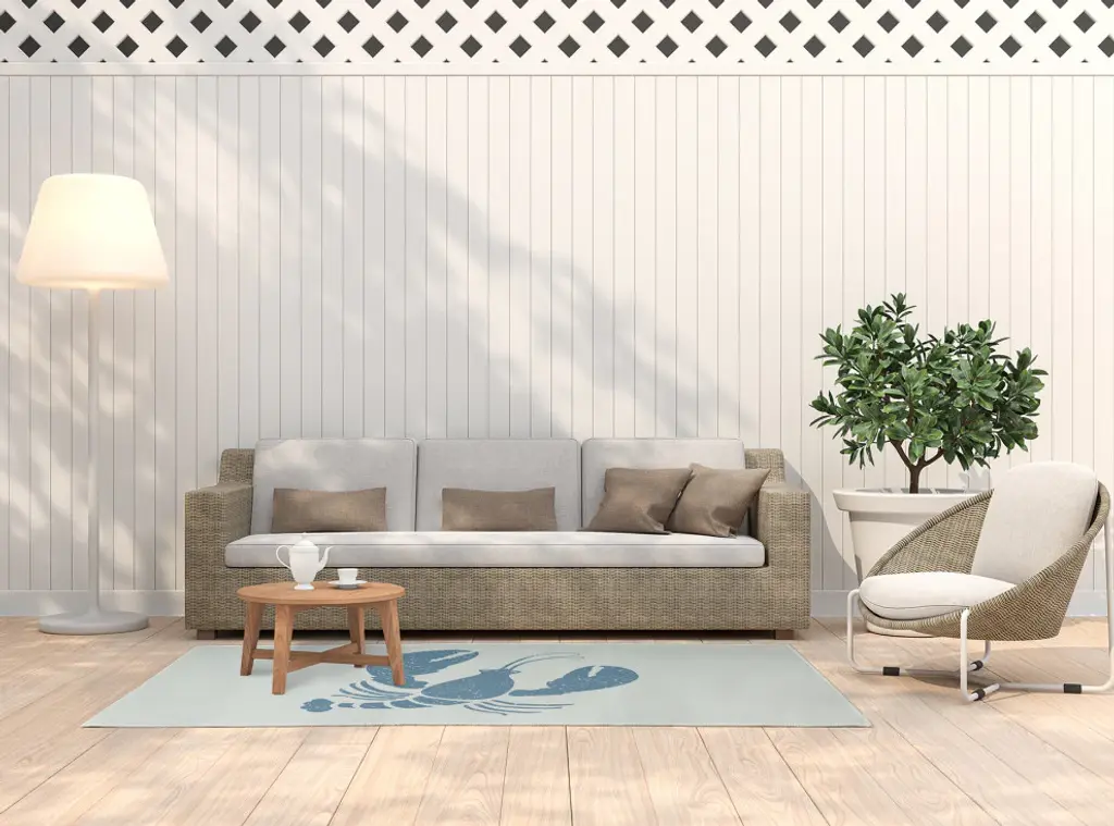 5' X 7' Lobster Nautical Indoor/outdoor Rug, Dusty Smoke And White