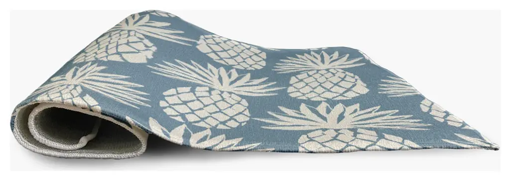 Add a floral touch to enhance your home decor with a Pineapple Pattern Indoor/outdoor Rug from our Botanical Blooms Collection. Everyone will delight in the space defining design brought to your porch, patio, kitchen, or bathroom by this area rug. The artistic and colorful design is printed on a soft polyester base with a skid resistant backing, making it a perfect way to add color, flare and personality to any indoor or outdoor space. To clean, use a mild soap and lay flat to dry.Soft underfoot, made of textured ChenilleStylish and functional to enliven your outdoor d?corSerged edgesCoated skid-resistant backingQuick-dry constructionStiff, lay-flat design