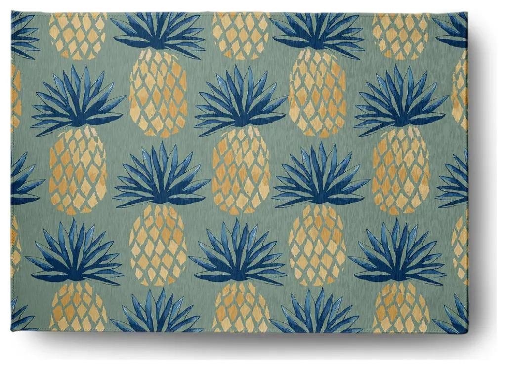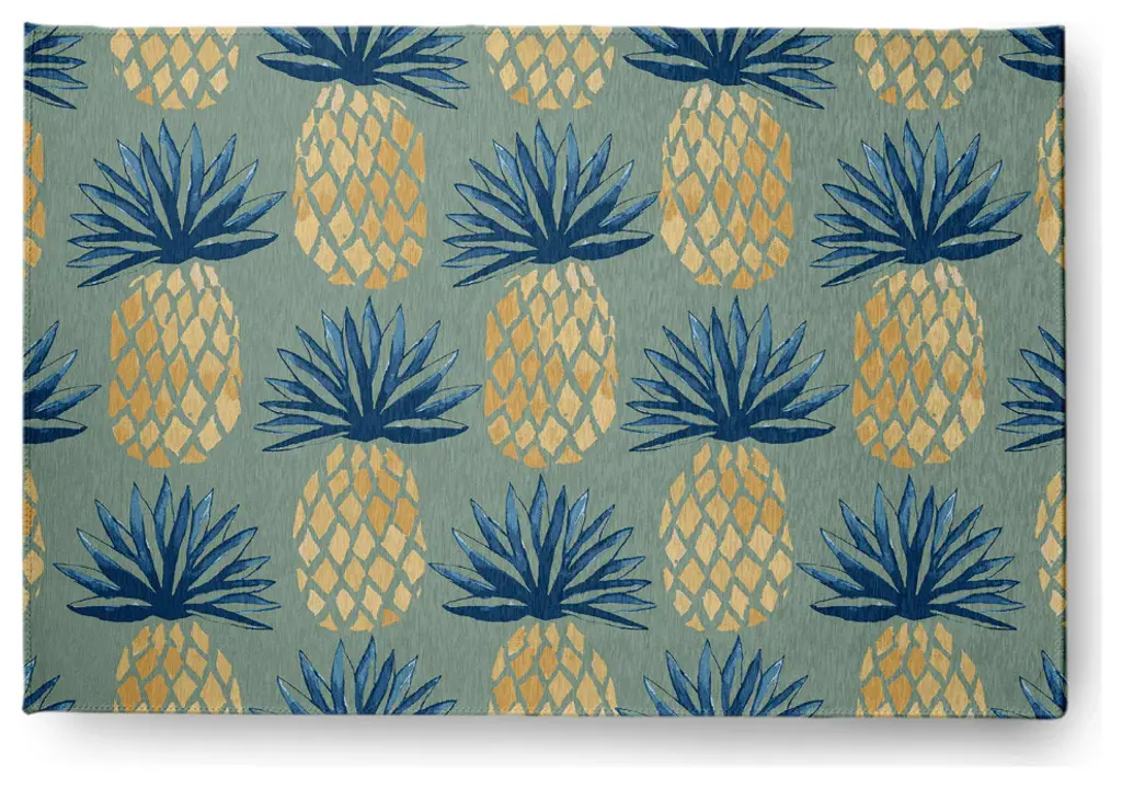 Add a floral touch to enhance your home decor with a Pineapple Pattern Indoor/outdoor Rug from our Botanical Blooms Collection. Everyone will delight in the space defining design brought to your porch, patio, kitchen, or bathroom by this area rug. The artistic and colorful design is printed on a soft polyester base with a skid resistant backing, making it a perfect way to add color, flare and personality to any indoor or outdoor space. To clean, use a mild soap and lay flat to dry.Soft underfoot, made of textured ChenilleStylish and functional to enliven your outdoor d?corSerged edgesCoated skid-resistant backingQuick-dry constructionStiff, lay-flat design