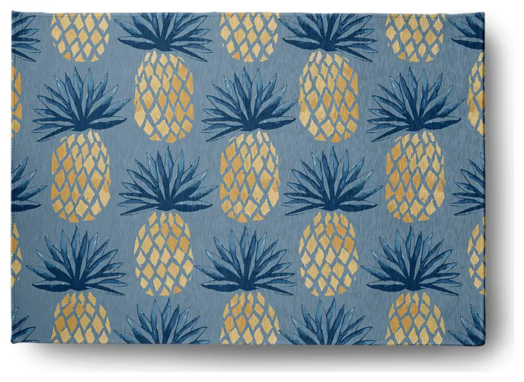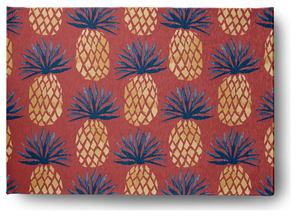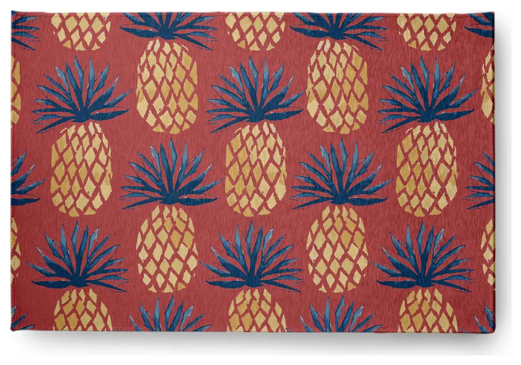 Create a lively tropical spirit and an inviting breezy atmosphere in your home with a Pineapple Stripes Indoor/outdoor Rug from our Tropical Resort Collection. Everyone will delight in the space defining design brought to your porch, patio, kitchen, or bathroom by this area rug. The artistic and colorful design is printed on a soft polyester base with a skid resistant backing, making it a perfect way to add color, flare and personality to any indoor or outdoor space. To clean, use a mild soap and lay flat to dry.Soft underfoot, made of textured ChenilleStylish and functional to enliven your outdoor d?corSerged edgesCoated skid-resistant backingQuick-dry constructionStiff, lay-flat design