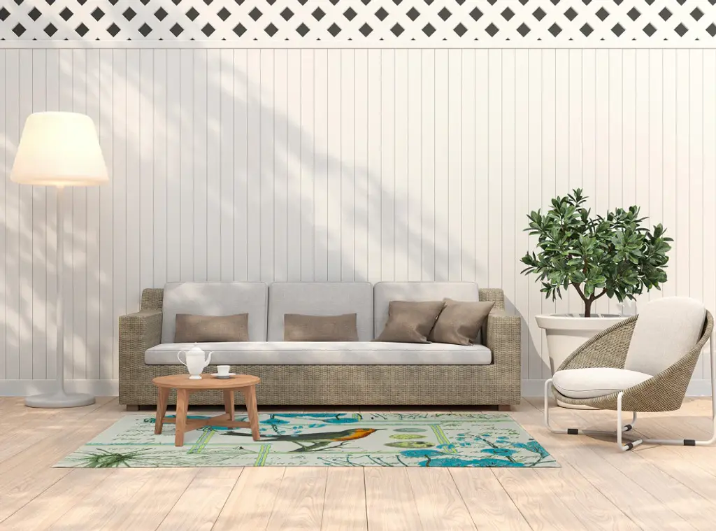 Enjoy a new style this season with a Singing Bird Indoor/outdoor Rug from our Funky Junky Collection. Everyone will delight in the space defining design brought to your porch, patio, kitchen, or bathroom by this area rug. The artistic and colorful design is printed on a soft polyester base with a skid resistant backing, making it a perfect way to add color, flare and personality to any indoor or outdoor space. To clean, use a mild soap and lay flat to dry.