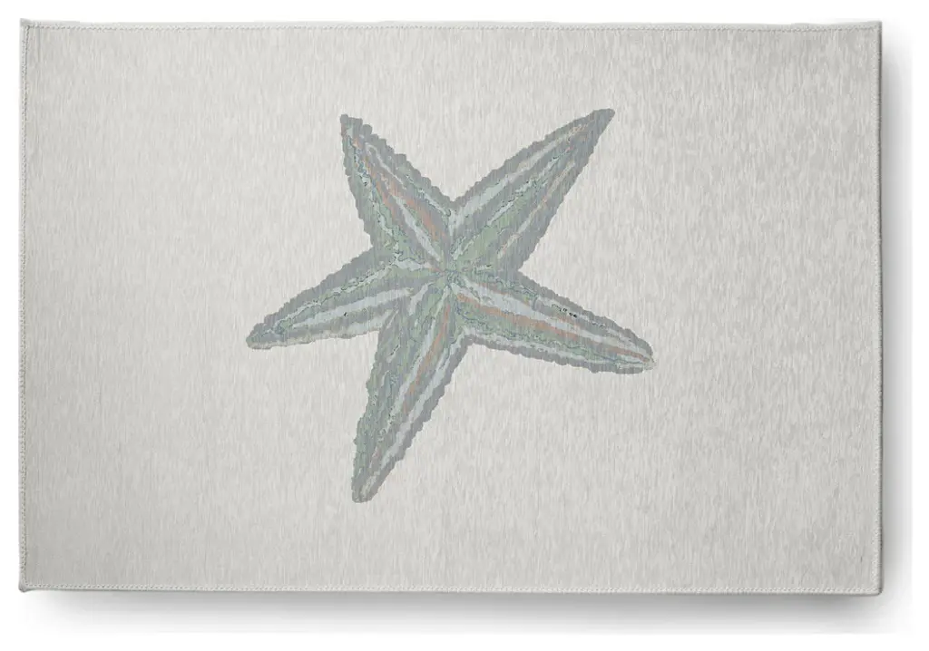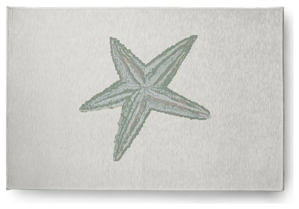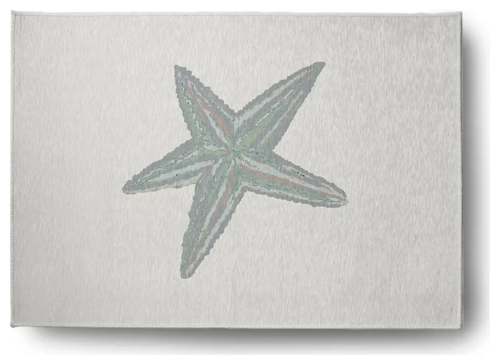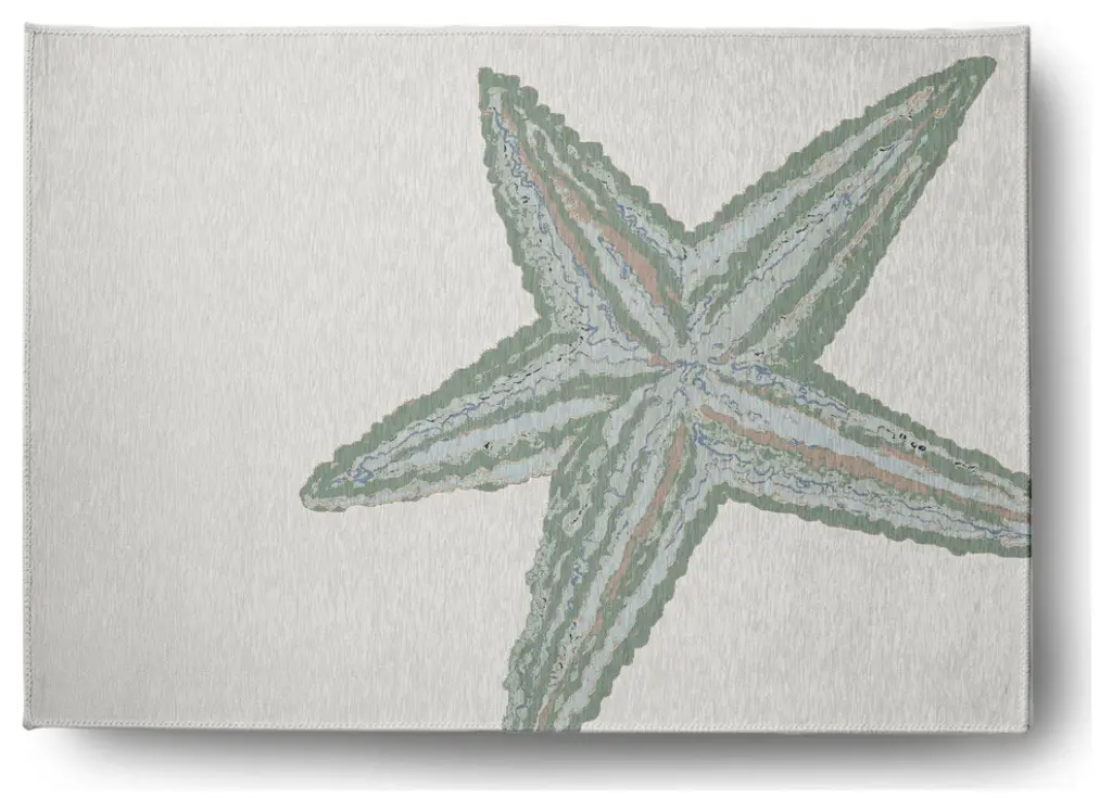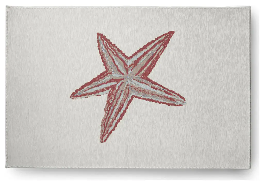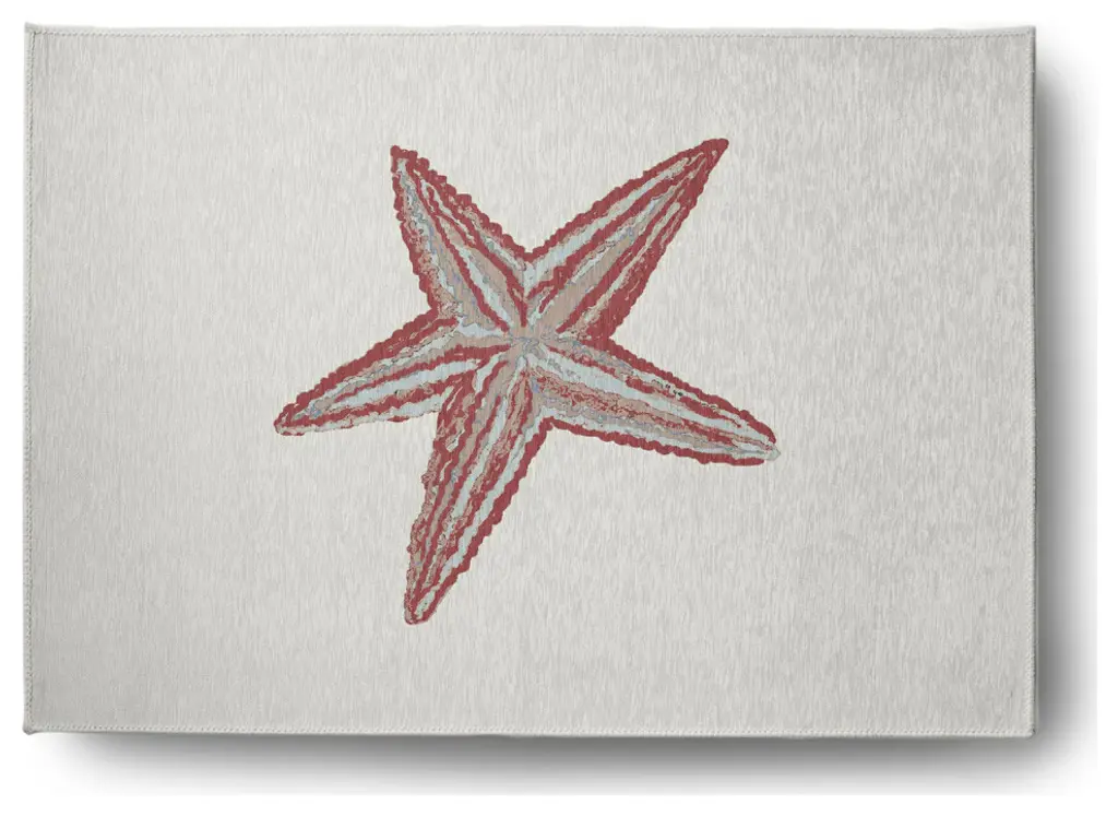 With the combination of sunny colors and beach style, you will love the Starfish Indoor/outdoor Rug from our Beach Vacation Collection. Everyone will delight in the space defining design brought to your porch, patio, kitchen, or bathroom by this area rug. The artistic and colorful design is printed on a soft polyester base with a skid resistant backing, making it a perfect way to add color, flare and personality to any indoor or outdoor space. To clean, use a mild soap and lay flat to dry.Soft underfoot, made of textured ChenilleStylish and functional to enliven your outdoor d?corSerged edgesCoated skid-resistant backingQuick-dry constructionStiff, lay-flat design
