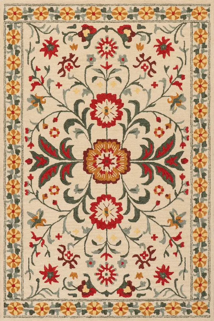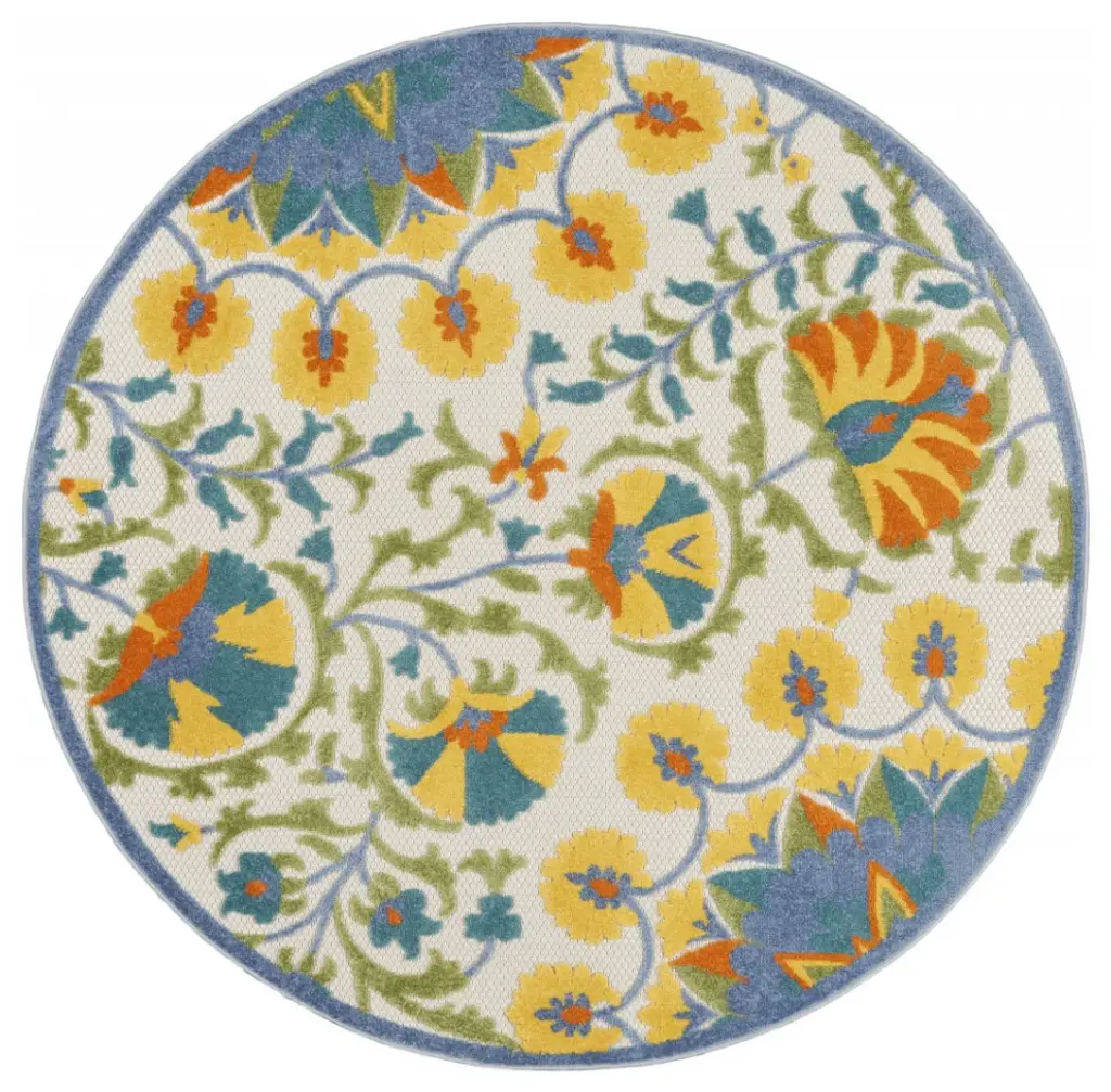 This 5'' x 8'' red and ivory floral indoor outdoor area rug, is a great way to add warmth to a room. This rectangle shaped rug features a floral design in red and ivory to give it visual interest. A classic shape marries with good looking design for your space Made in Turkey, this rug offers high quality combined with good looking designer sensibilities. Area Rugs help to give warmth and sense of home to your space. 1" H x 63" W x 89" D