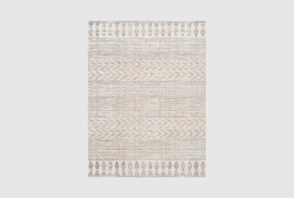 Elevate your living space with the 5'3" x 7'7" Synthetic Rug-Lucia Westport Beige. This geometric performance rug, designed in a mid-century modern style, is perfect for both indoor and outdoor use.