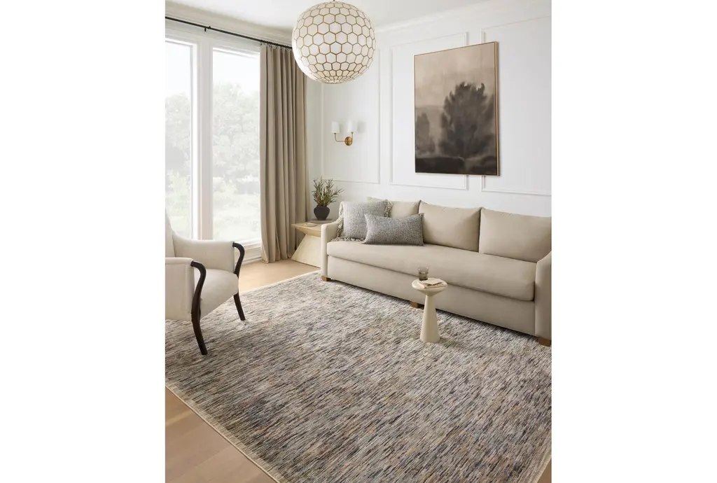 5'3" X 7'9" Fabric Rug-Almelo Modern Abstract Blue & Sand | Rectangle | Low Pile | High Traffic