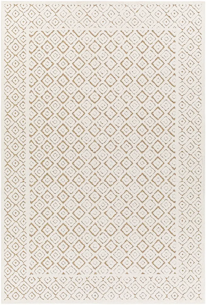 Experience a continual sense of calmness and fluidity in your space with this rectangular area rug. Displaying a striking ivory and sand geometric lattice pattern, this polypropylene rug features a high pile that stands up to daily moderate traffic. To maintain the look and feel of your rug, blot spills immediately with a clean white cloth, vacuum regularly and spot clean using a mild soap made for the specific rug fiber. Professionally clean occasionally or when heavily soiled. A rug pad is recommended.