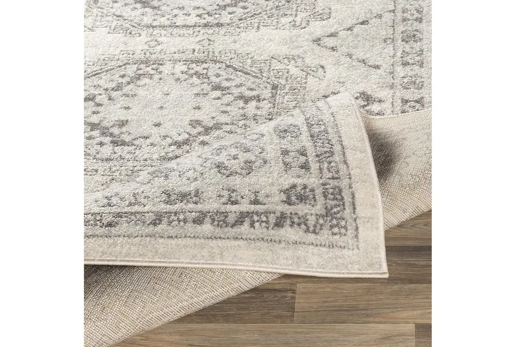 Enhance your space with the 5'3"x7'3" Fiber Rug by Surya, featuring a global muted grey and khaki abstract design. This modern rug is crafted from 100% polypropylene, making it both soft and durable for indoor use. With a low pile height, it's perfect for high-traffic areas and adds a touch of sophistication to any room.