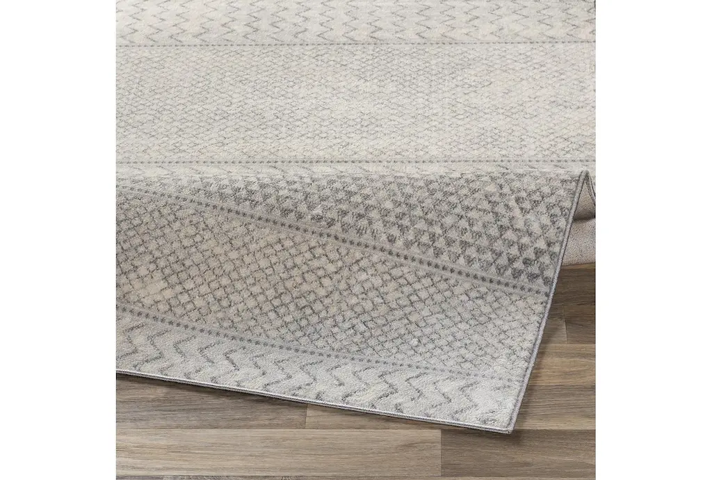 Experience the blend of modern style and muted stripes with the 5'3"x7'3" Fiber Rug by Surya. This low pile, rectangle-shaped rug in silver grey, medium grey, and cream is ideal for any living room setting. Its polypropylene fiber ensures durability and comfort, making it a perfect addition to your indoor space.