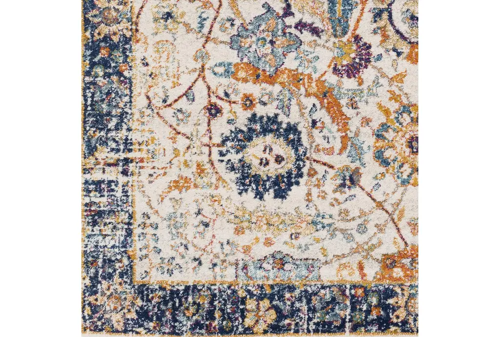 5'3"x7'3" Fiber Rug-Katari Dark Blue/orange | Low Pile | Rectangle | Botanical By Surya
