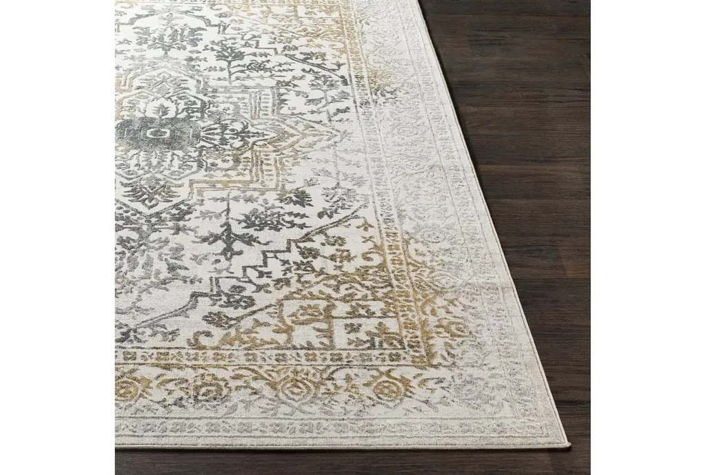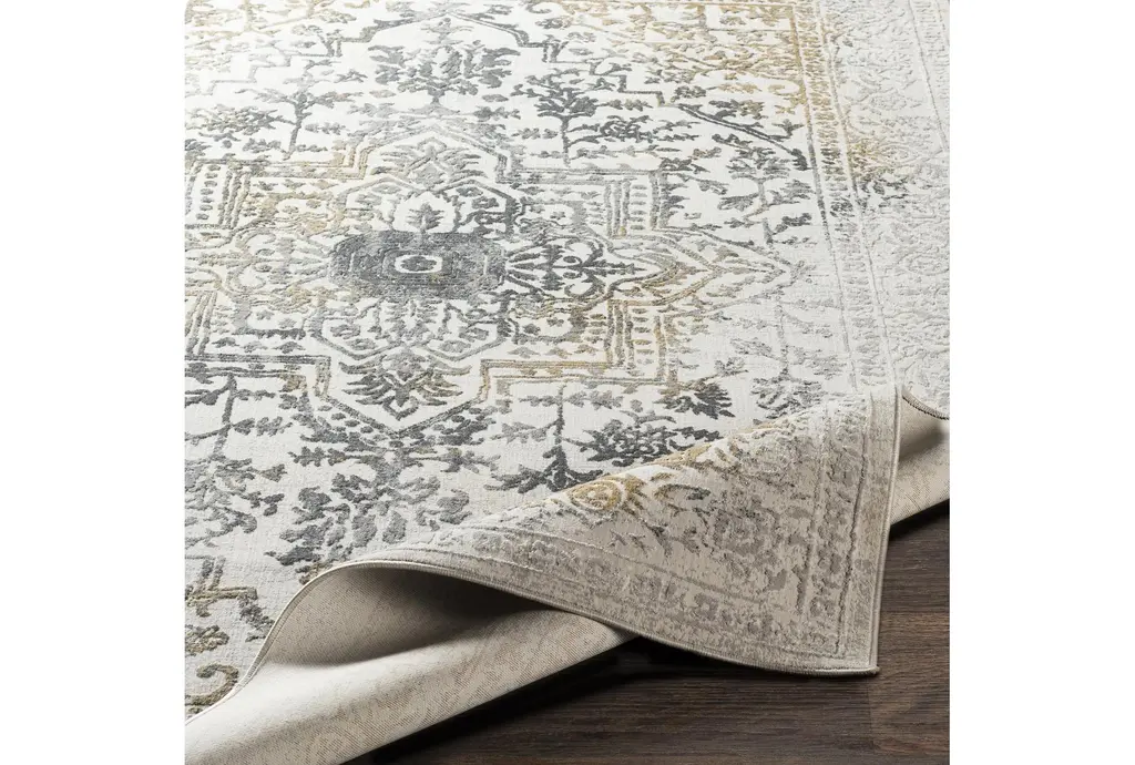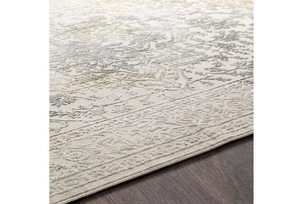 The 5'3" x 7'3" Fiber Rug by Surya brings a touch of traditional charm to your living space. Featuring a beautiful botanical design in charcoal, medium grey, mustard, and light grey, this low pile rug is perfect for indoor use. Its durable fiber construction, composed of 70% viscose and 30% polyester, ensures it will withstand high-traffic areas while maintaining its soft texture.
