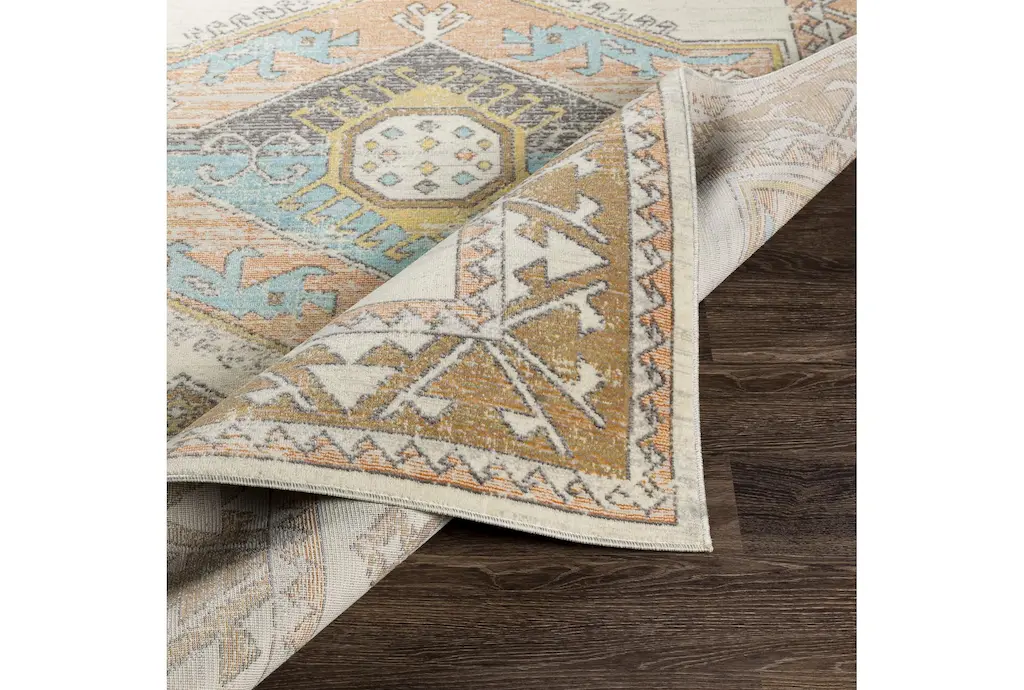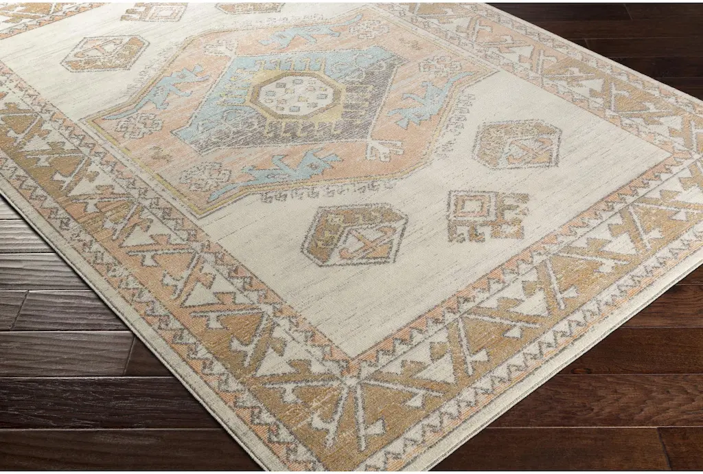 Bring a touch of boho charm to your living space with the 5'3"X7'3" Indoor/Outdoor Fiber Rug by Surya. This low pile rug features an ivory background with a vibrant global multi-color Aztec design, making it a versatile addition to any decor. Ideal for both indoor and outdoor use, this rectangle rug is made from 100% polypropylene, ensuring durability and easy maintenance.