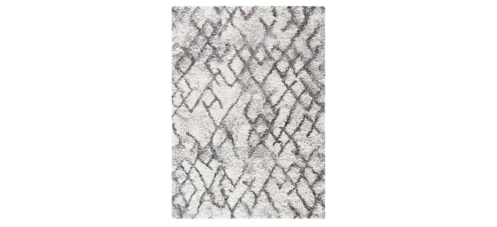 5'3"x7'5" Fiber Rug | Charcoal Ivory Shaggy Abstract Blocks | Rectangle Grid Indoor