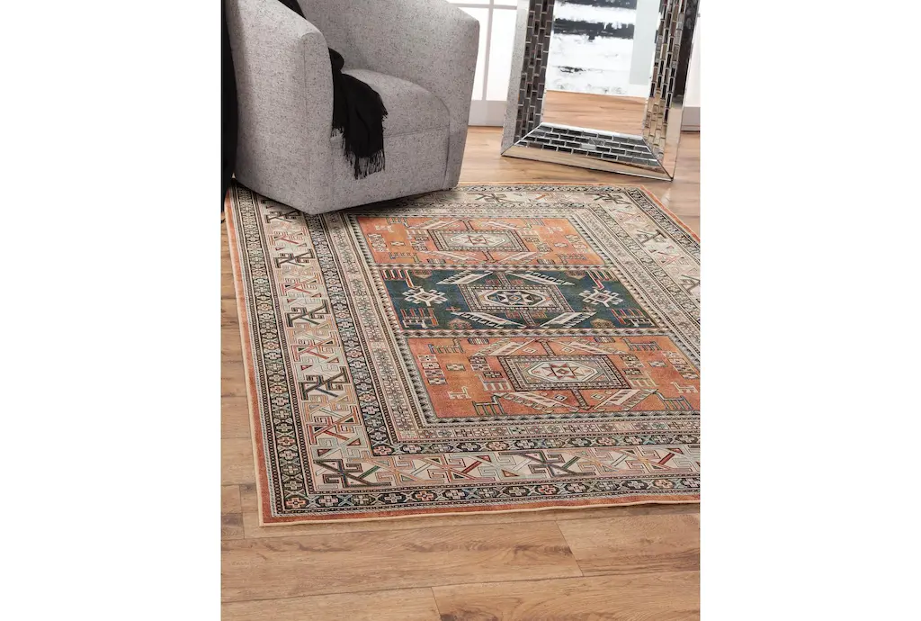 Enhance the charm of your living space with the 5'3" x 7'5" Rectangle Rug - Sonoma Aztec. This rustic rug features a vibrant coral color complemented by a multicolor pattern, perfect for adding a touch of character to any room. Made with durable polyester and viscose, this rug offers both style and performance.