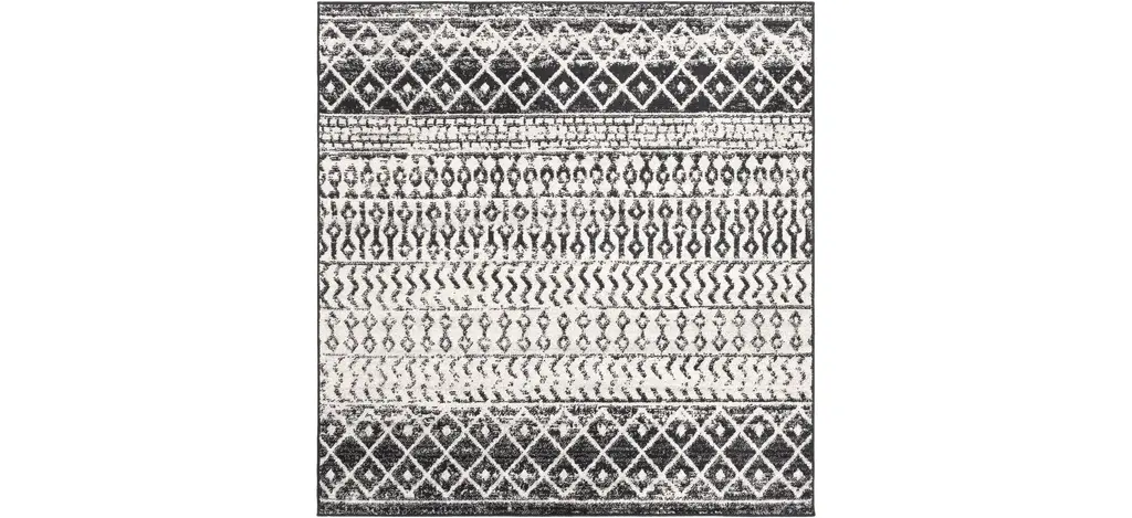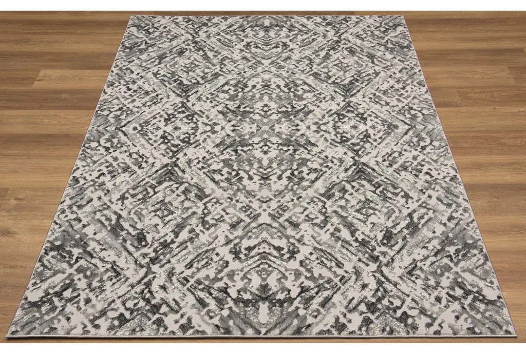 Enhance your living space with the 5'3"x7'5" Rug in Diamonds Charcoal/Grey. This contemporary rug features a stunning geometric pattern in charcoal grey, light grey, and white, making it a versatile addition to any room. Made from 100% polyester, it offers durability and a soft texture underfoot.