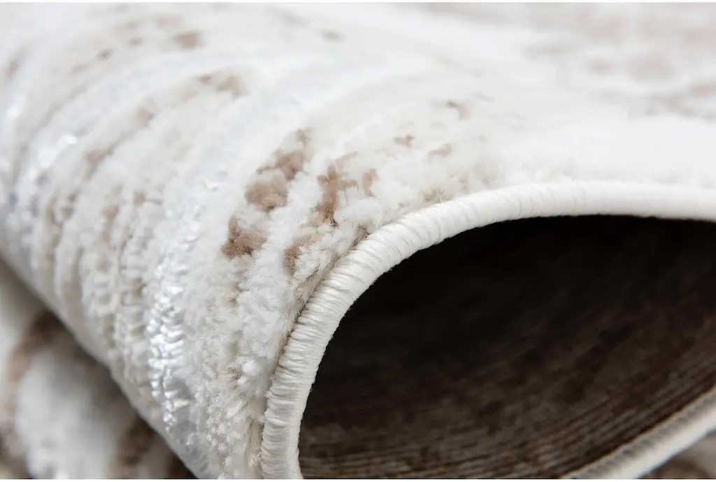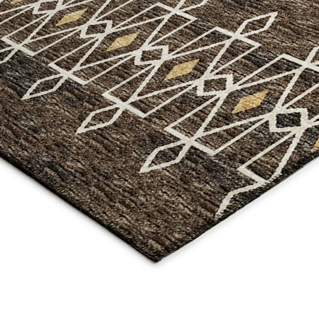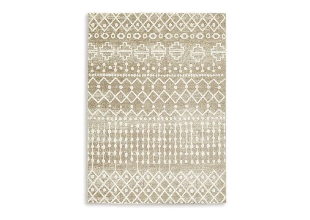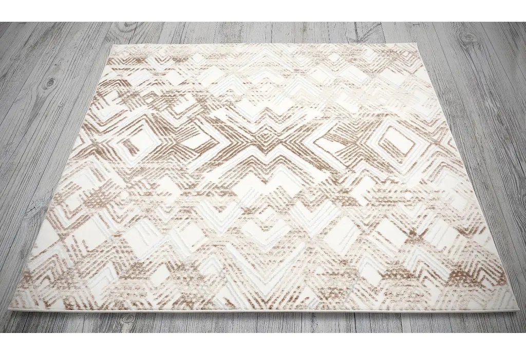 This 5'3"x7'5" rug features modern peak lines in cream and beige tones, adding a touch of sophistication to any room. Made from 100% polyester, its geometric design and low pile make it perfect for layering in high-traffic indoor spaces such as living rooms and offices.
