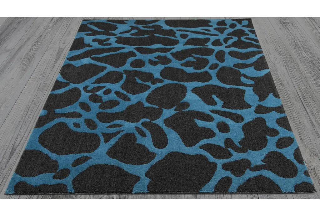 5'3"x7'5" Rug-Modern Spots Plush Pile Blue/black | Low Pile | Layering | Rectangle | Abstract
