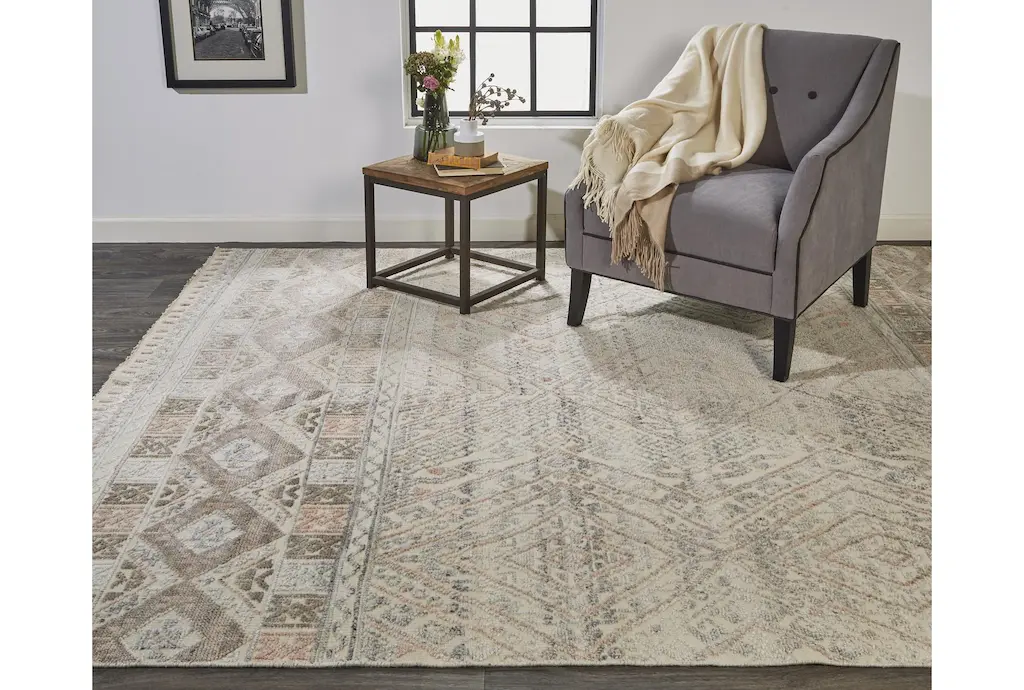 5'5"x8'5" Rug-Hand Knotted Wool Blush/ivory | Low Pile | Geometric | Rectangle