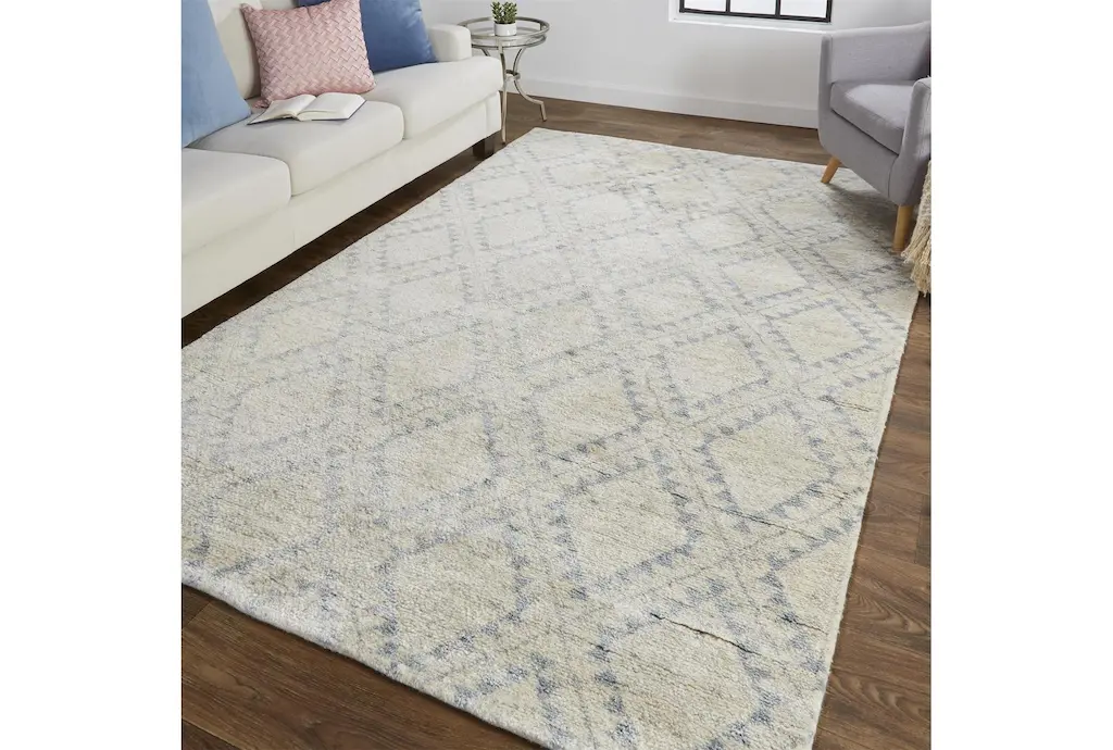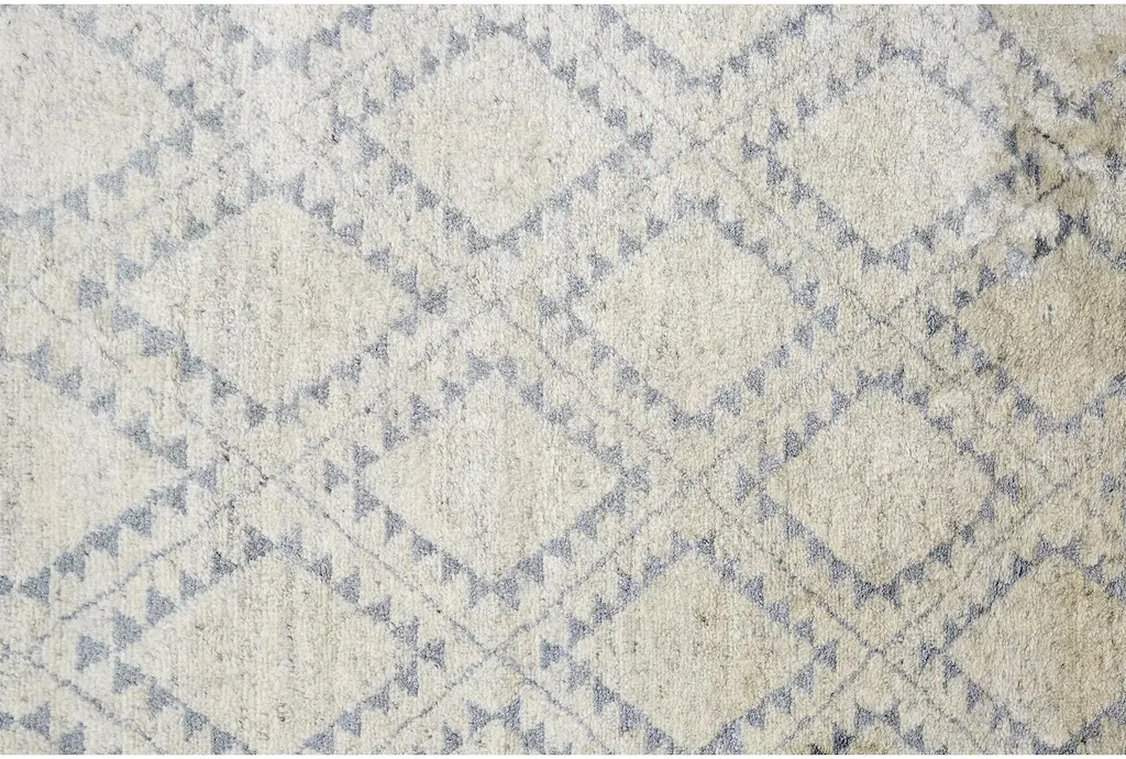 5'5"x8'5" Rug-Wool And Bamboo Hand Traditional Knotted Ice Blue | Hand Knotted | Grid | Rectangle