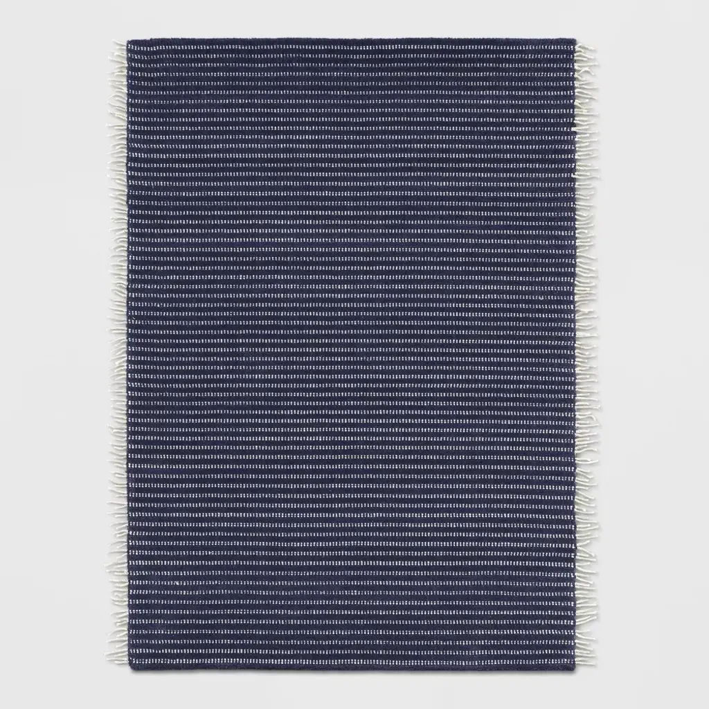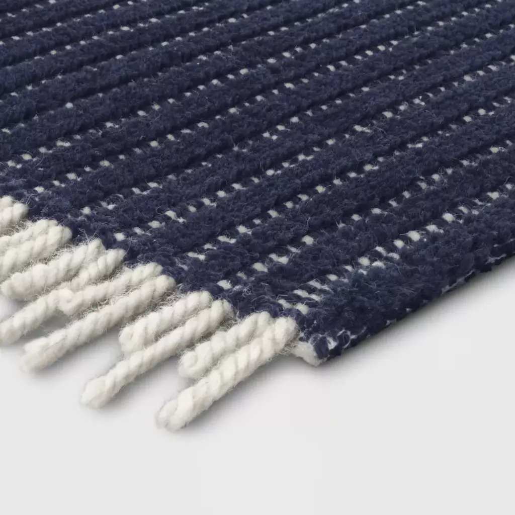 Add some interest to your flooring in any room with this Blue Fringe Tufted Area Rug from Threshold™ designed with Studio McGee. This handmade area rug brings a welcoming look to your indoor living space. It showcases a blue and white woven striped pattern, along with soft fringe along the sides for casual texture and visual appeal. The tufted wool construction adds soft comfort and warmth to your flooring for a great feel underfoot, while the cotton backing keeps the rug in place and provides a finished look. Plus, it has a low pile height that's perfect for frequently used areas like your living room, hallway or entryway. Goodweave certified. Meet Shea McGee, the designer and stylist behind the brand Studio McGee. Founded alongside her husband, Syd, the studio is known for Shea’s design of beautifully elevated spaces that encourage clients to surround themselves with the things and people they love. Now she’s partnering with Threshold to offer Studio McGee’s classic design in a new collection for inspired homes, everywhere.