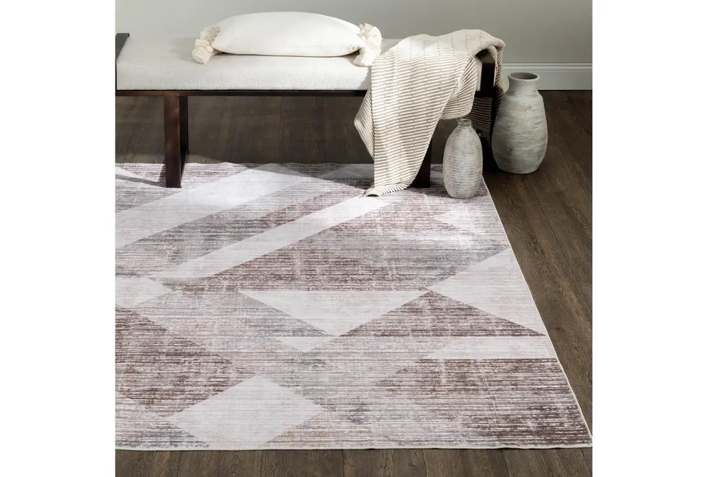 5'x7' Rug-Modern Quinn Taupe & Grey Modern Triangles Machine Washable | Geometric | Uv Resistant | High Traffic | Low Pile | Performance
