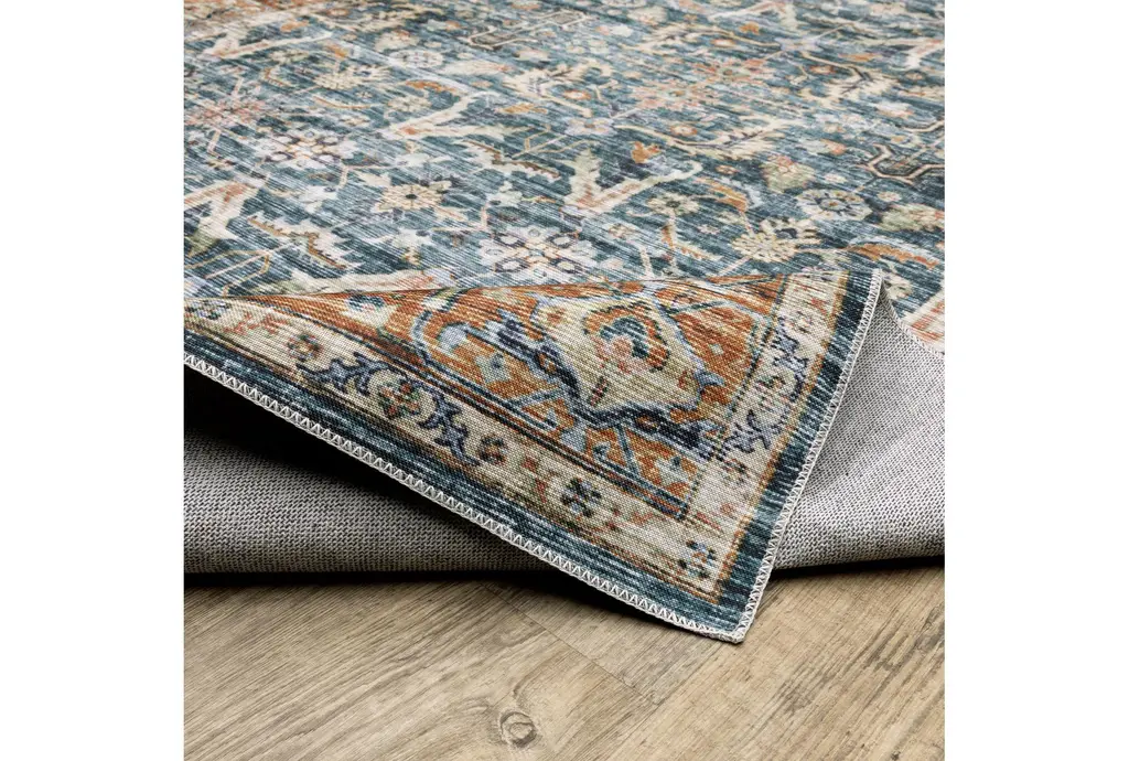 This exquisite 5'X7' rug in traditional blue and rust hues is made of high-quality polyester, ensuring both durability and easy maintenance with its machine washable feature. Perfect for indoor use, this non-slip rug boasts a classic and timeless style that will elevate any room in your home.