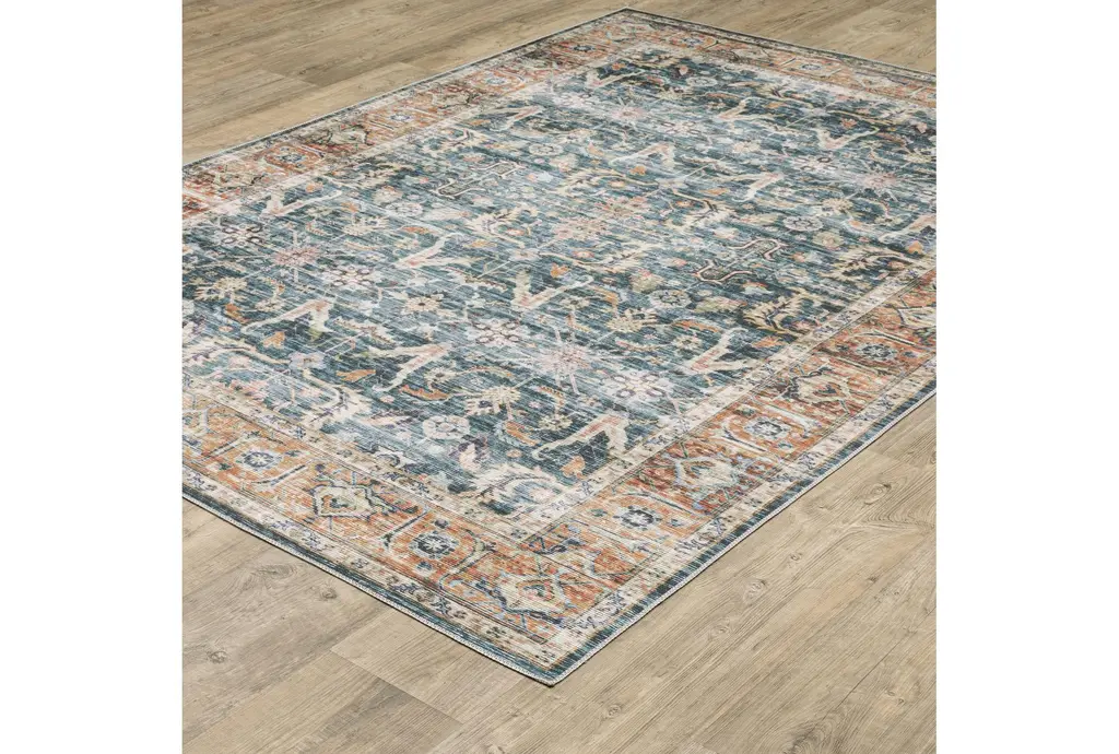 5'x7' Rug-Shem Creek Traditional Botanical Machine Washable Blue/rust | Uv Resistant | Non Slip | Performance | Rectangle