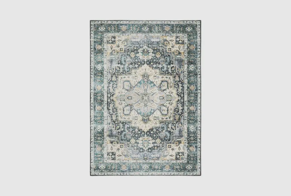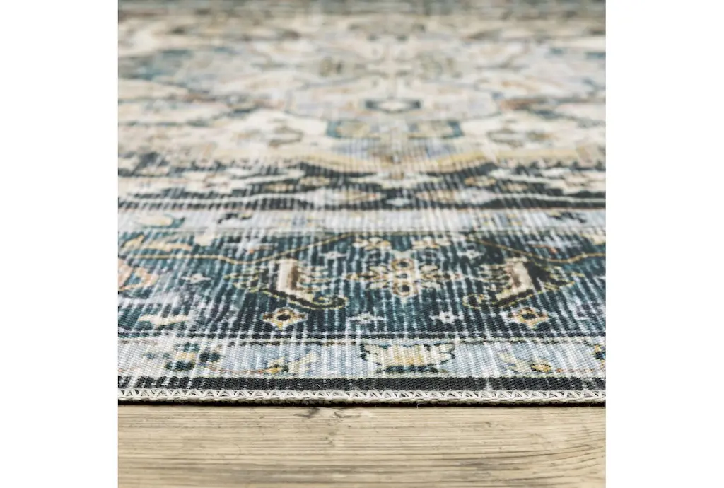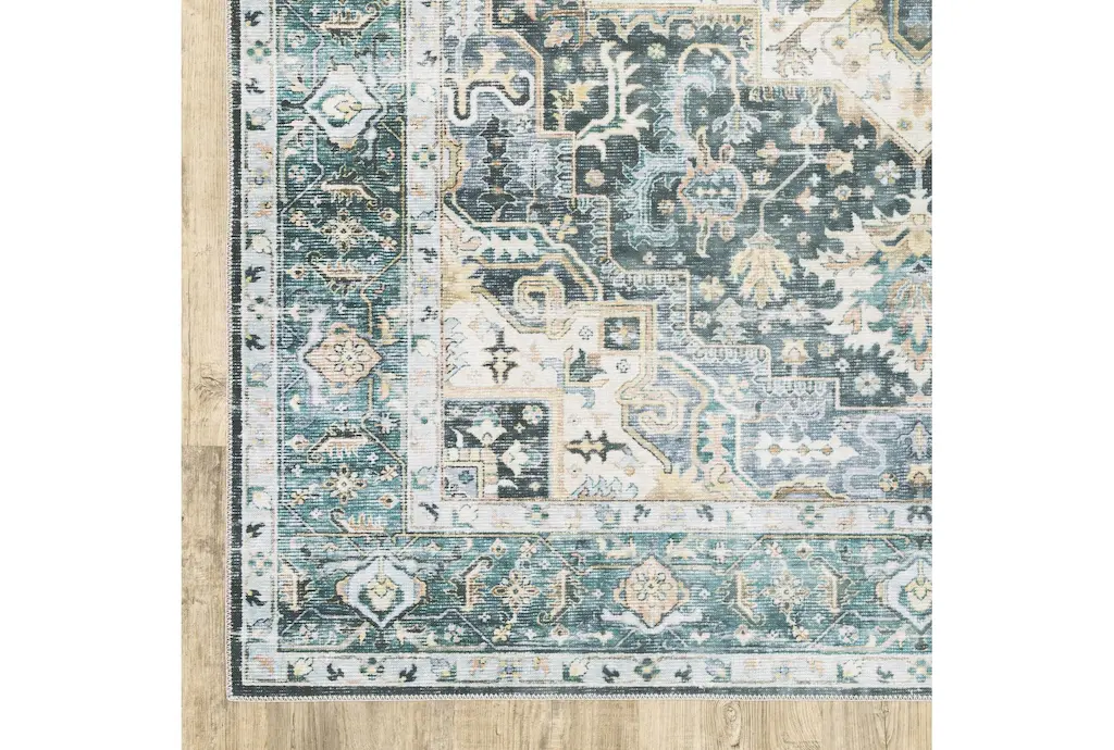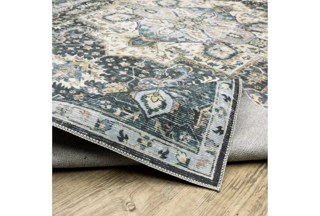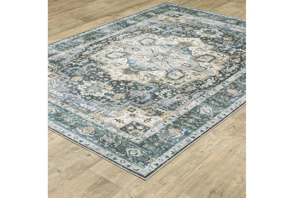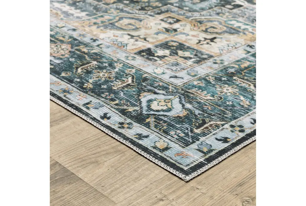 5'x7' Rug-Shem Creek Traditional Botanical Machine Washable Medallion Blue | Uv Resistant | Non Slip | Performance | Rectangle