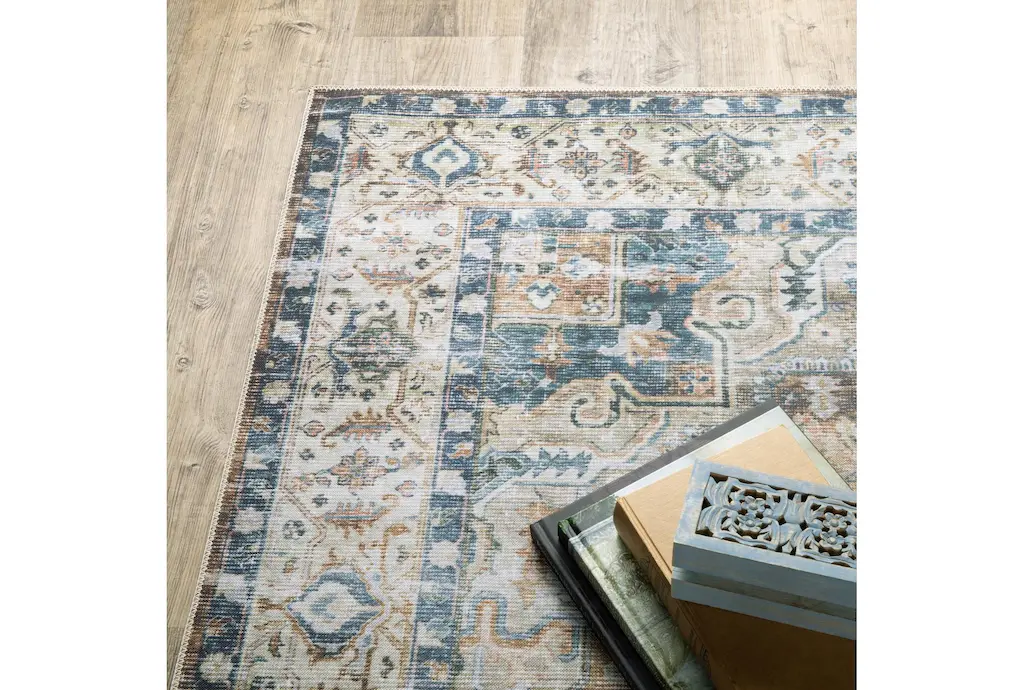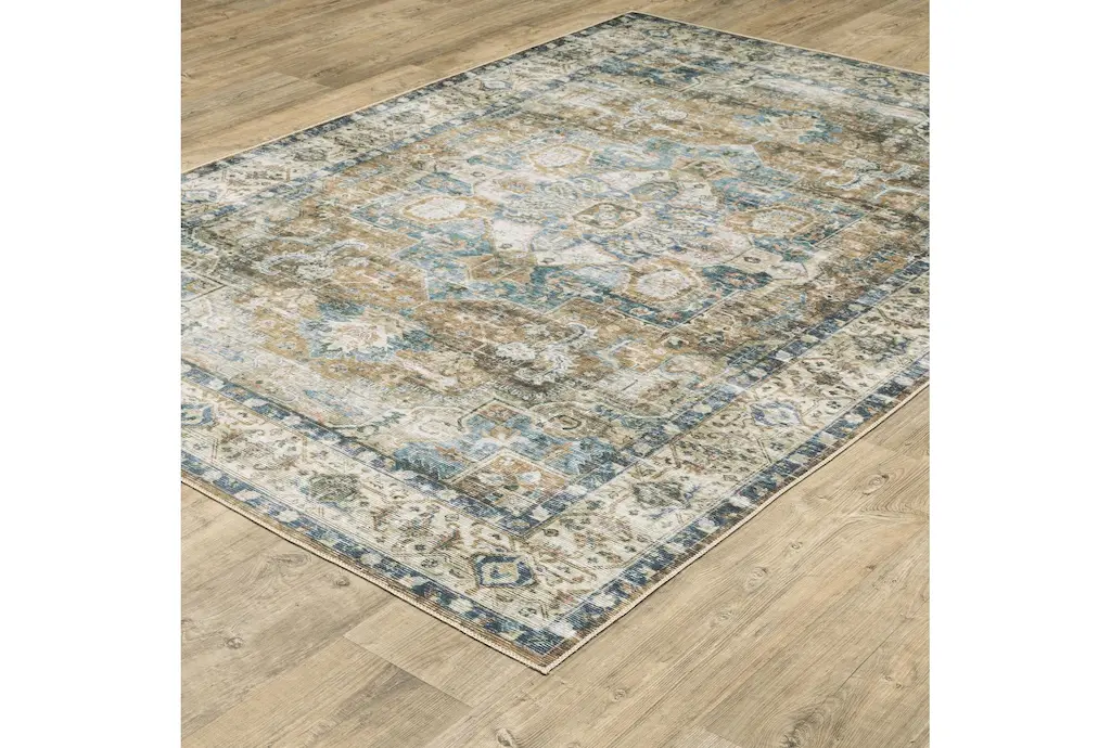 5'x7' Rug-Shem Creek Traditional Botanical Machine Washable Medallion Gold | Uv Resistant | Non Slip | Performance | Rectangle