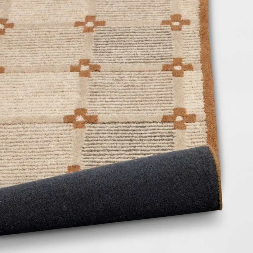 Add lovely style to any room in your home with this Wool Handtufted Area Rug from Threshold™. This rectangular hand-tufted area rug showcases a floral pattern in tan on a checkered backdrop for a charming look that blends well with any decor aesthetic. Featuring a wool construction for soft underfoot comfort, the medium-pile area rug is ideal for use in a variety of areas within your home.Threshold™: Looks like home, feels like you.