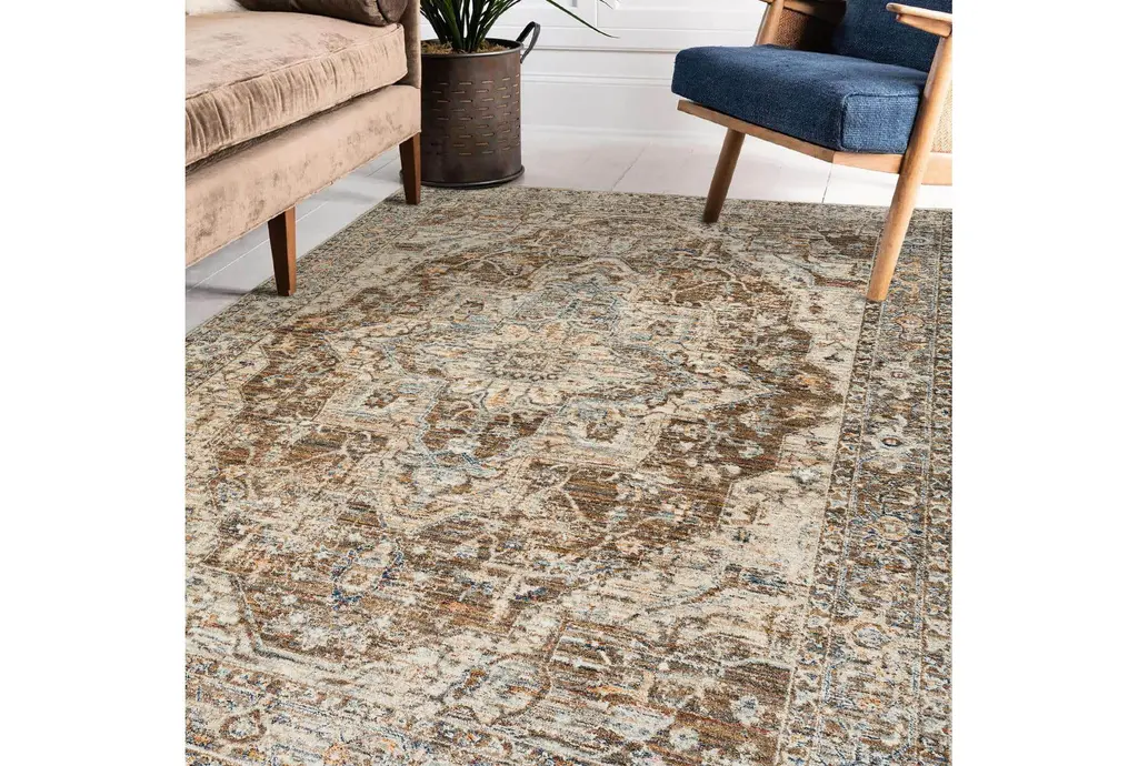Enhance your living space with the 5'X7'10" Rug-Vivian Medallion Blue & Traditional Persian Mocha. This medium-sized, rectangular rug features a detailed classic design that blends traditional and farmhouse styles, making it a versatile addition to any room. The warm mocha color and intricate medallion pattern add a touch of elegance and sophistication to your decor.