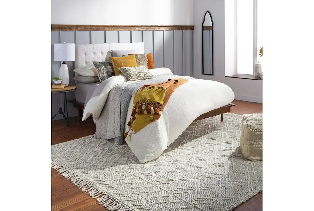 5'x7'5" Rectangle Fiber Rug-Handwoven Ivory Fringe | Geometric | Indoor | Low Pile By Surya
