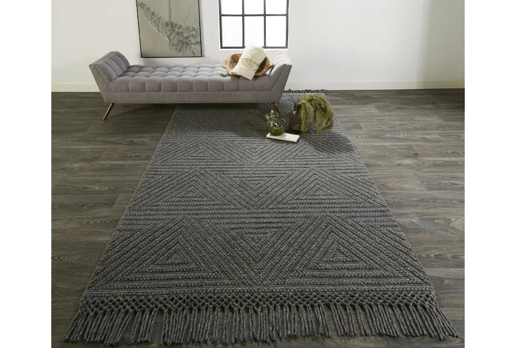 5'x7'5" Rug | Textured Traditional Wool Boho Slate/grey | Rectangle Geometric Indoor Low Pile