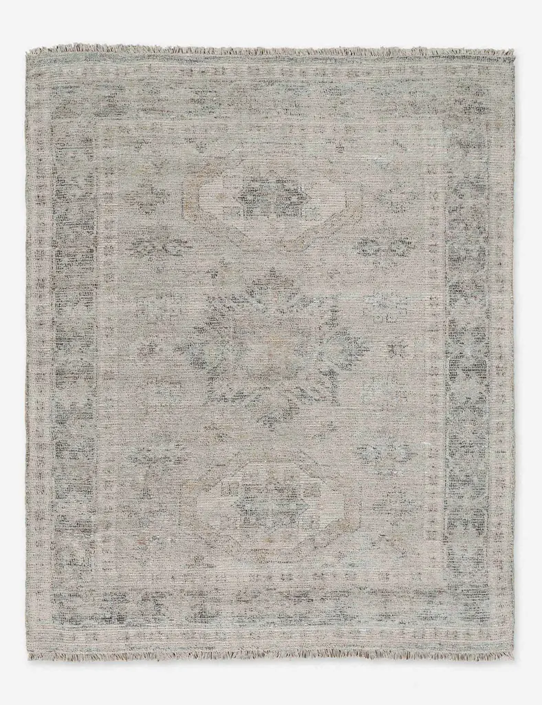 5'x7'5" Wool Rug-Faded Traditional Sand | Low Pile | Rectangle | Botanical