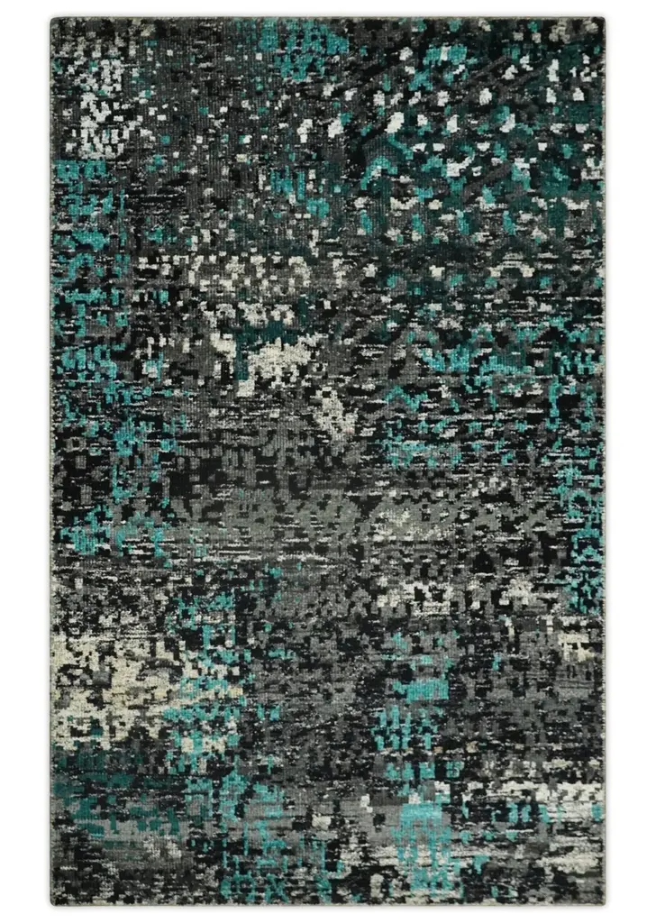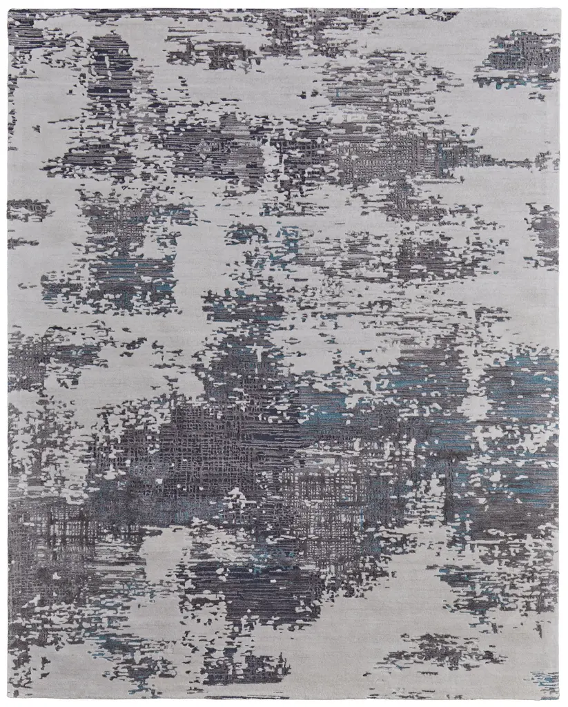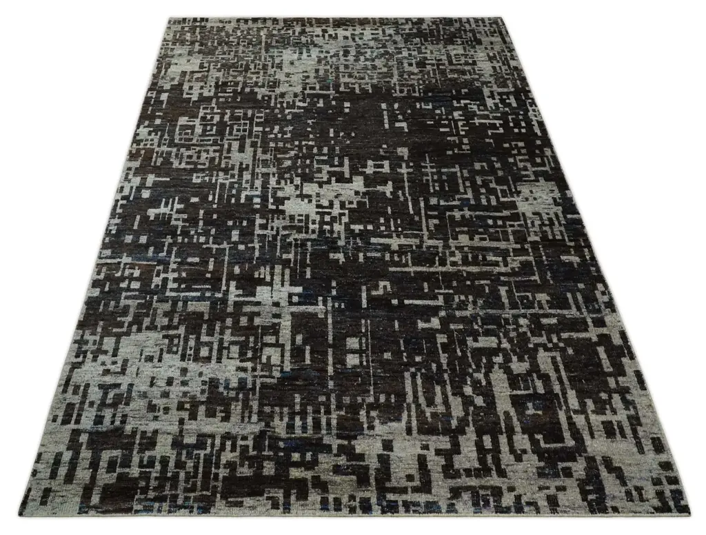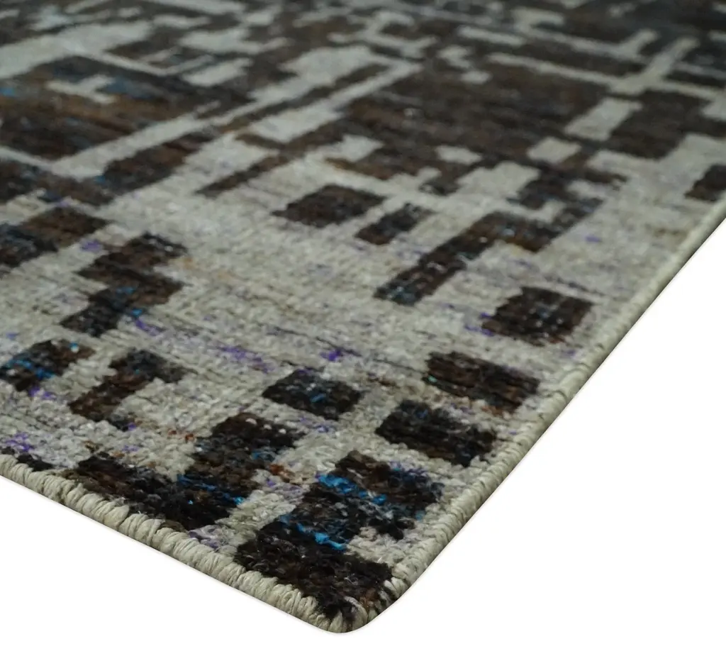 5X8 And 9X12 Hand Knotted Silver, Charcoal And Brown Modern Abstract Contemporary Recycled Silk Area Rug | Op29 - 5X8