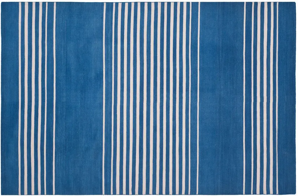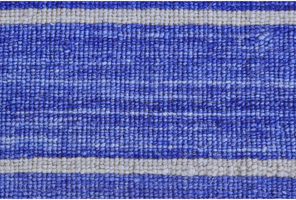 This 5'x8' Fiber Rug in Indigo Ombre Stripe is a perfect addition to any dorm room or contemporary space. Made with a blend of 80% wool and 20% cotton, this flat weave rug offers durability and comfort. Its low pile design makes it ideal for high-traffic areas.
