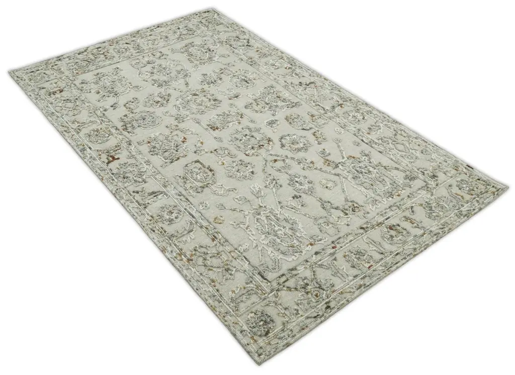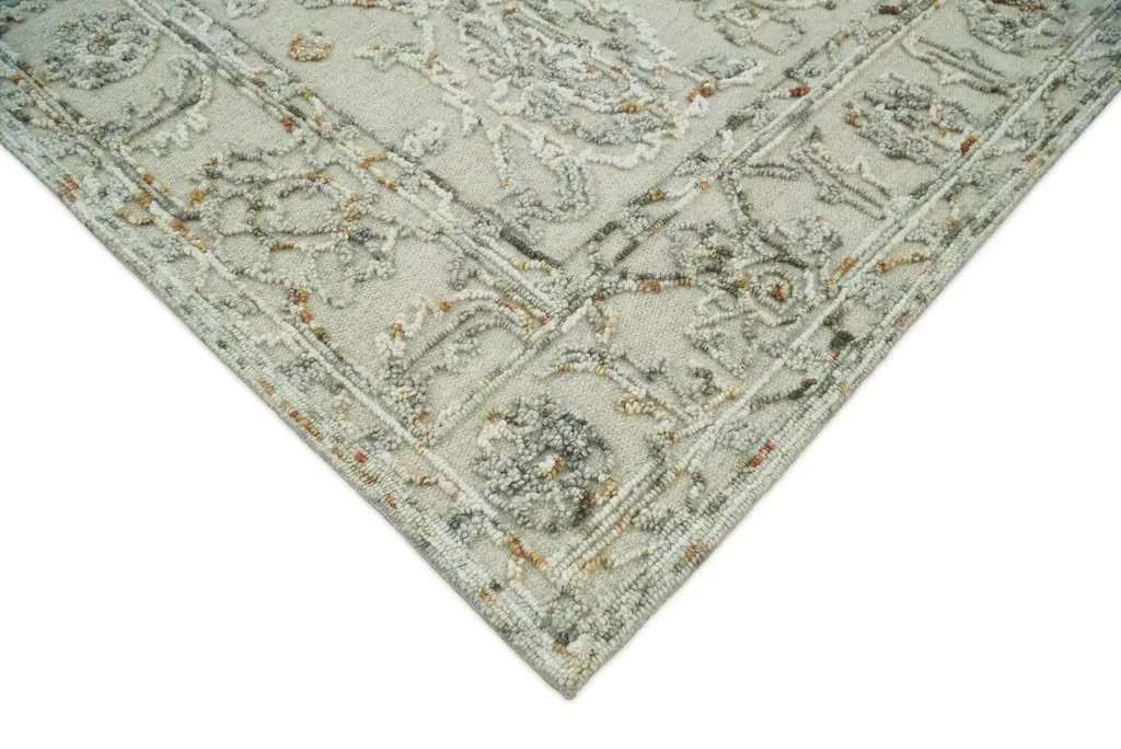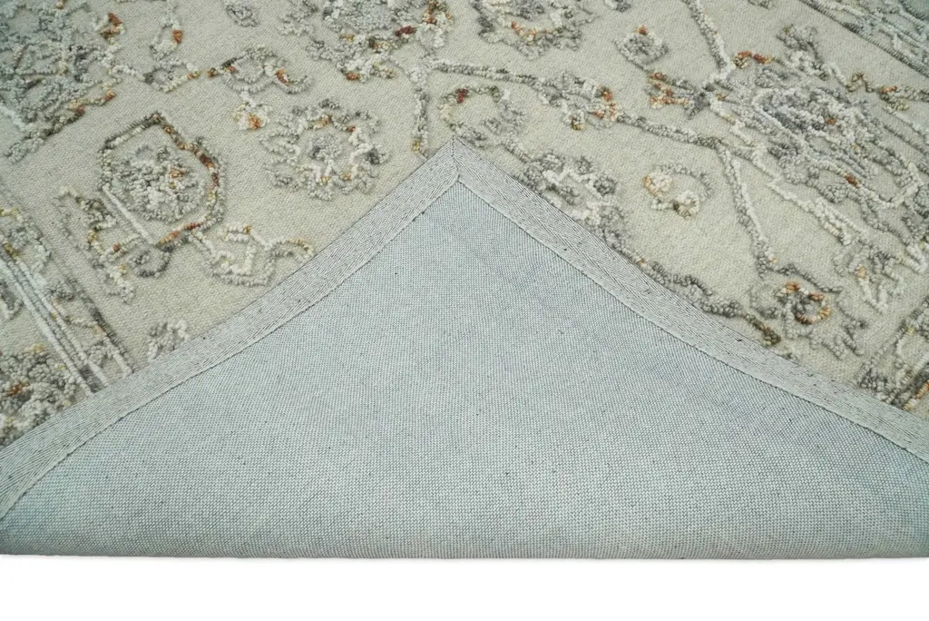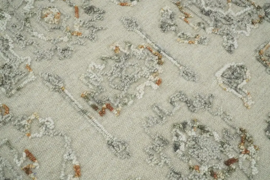 5X8 Hand Hooked Beige And Silver Wool Textured Loop Area Rug | Gar2 - 5X8