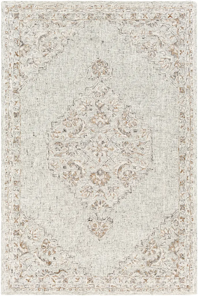 This Hand-Hooked Area Rug has been made with fine wool. The Persian-inspired floral design is shaded White and Silver color on the brown canvas gives a modern and elegant look to your room.The loop weaving of the rug adds a textural element to your interiors.Hand-Hooked rugs are woven using a specialized mechanical/semi-automated tufting gun. The rugs typically have a loop pile. Hand-Hooked Made with wool Color: Silver and White on Brown Canvas Contact us for custom sizes USERS GUIDE Avoid prolonged moisture Vacuum regularly and/or shake to remove dust Do not pull any loose threads. Use scissors to simply cut the ends Blot spills immediately with a white cloth. Harsh chemicals may damage or fade the rug Use rug protectors under heavy furniture