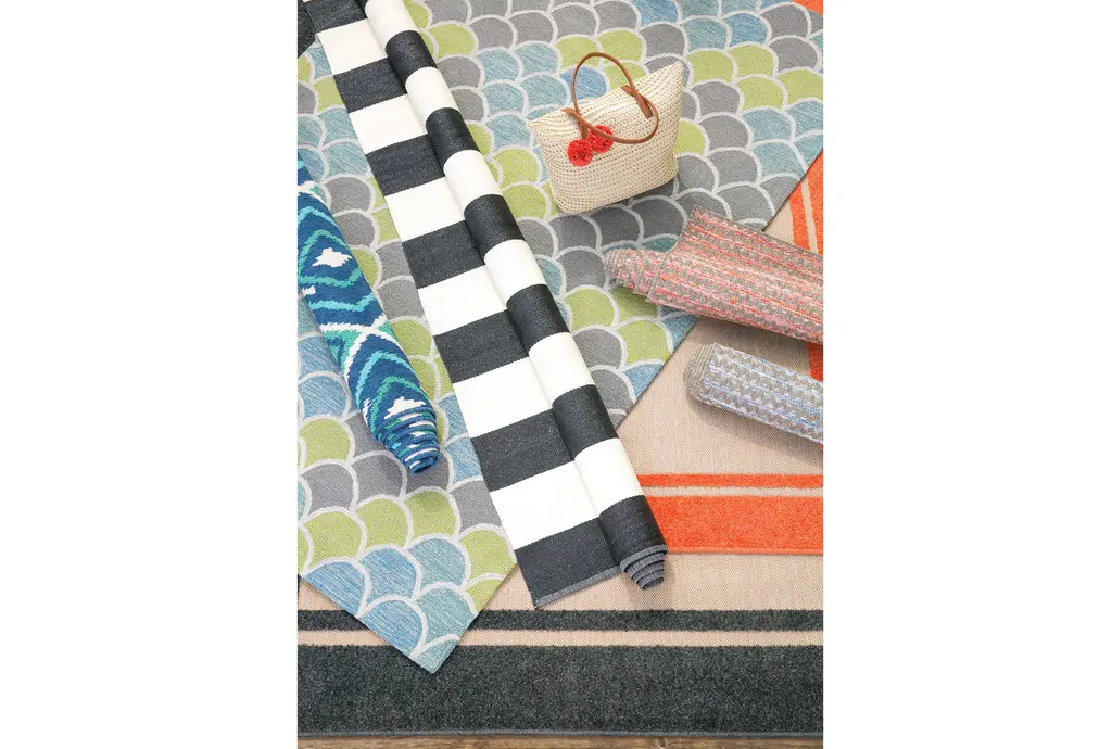 5'x8' Indoor/outdoor Fiber Rug-Black & White Cabana Stripe | Low Pile | Rectangle By Surya