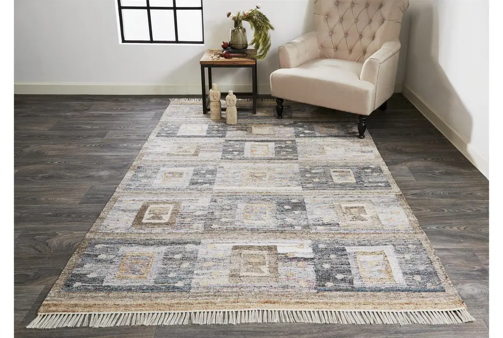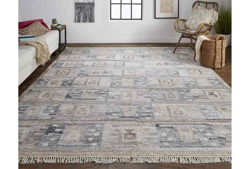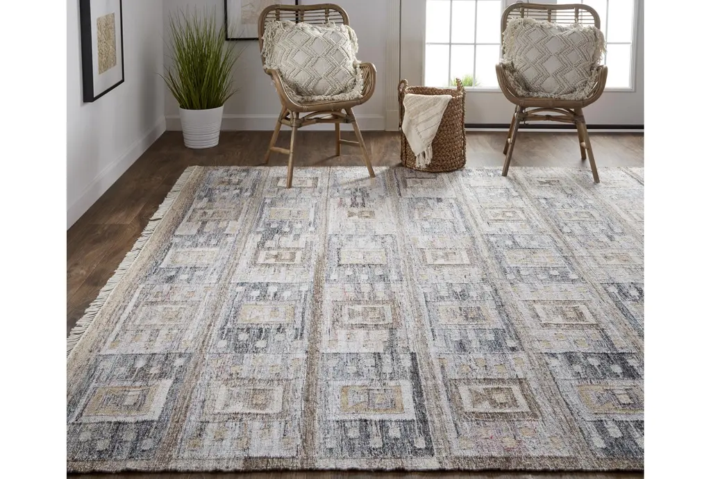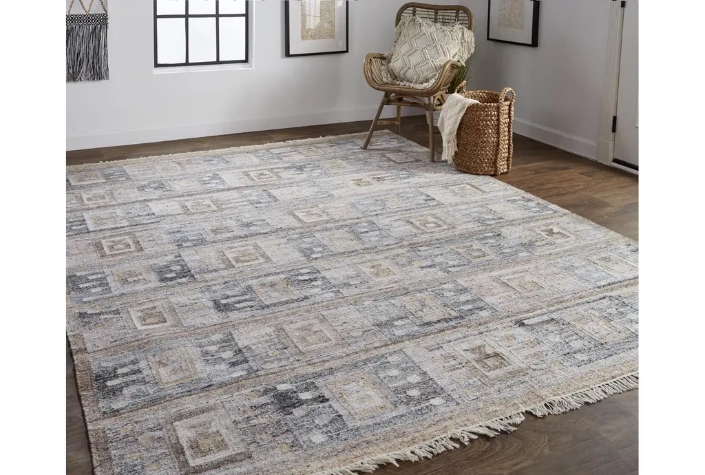 5'x8' Rug-Elstow Eco Friendly Bohemian Geometric Grey & Tan Rectangle | Low Pile | Layering