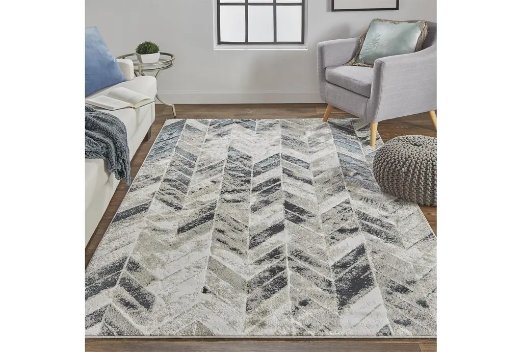 5'x8' Rug | Modern Silver Metallic Black Chevron | Rectangle | Indoor | Low Pile | Layering