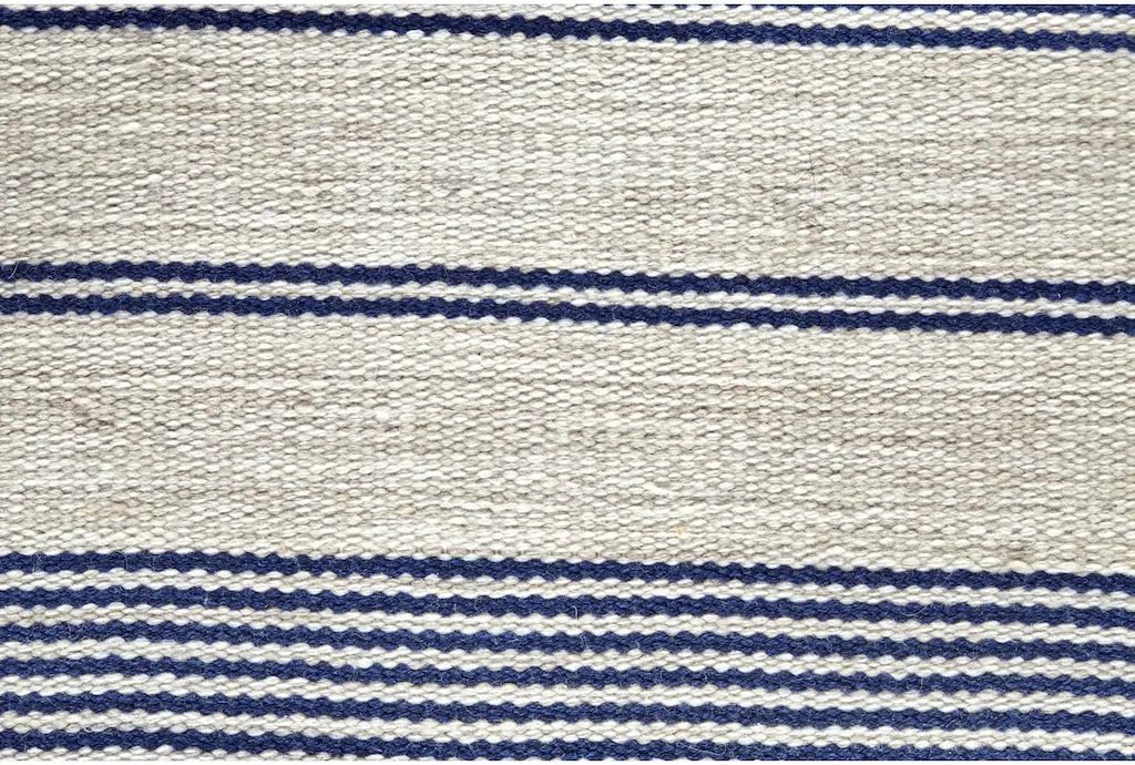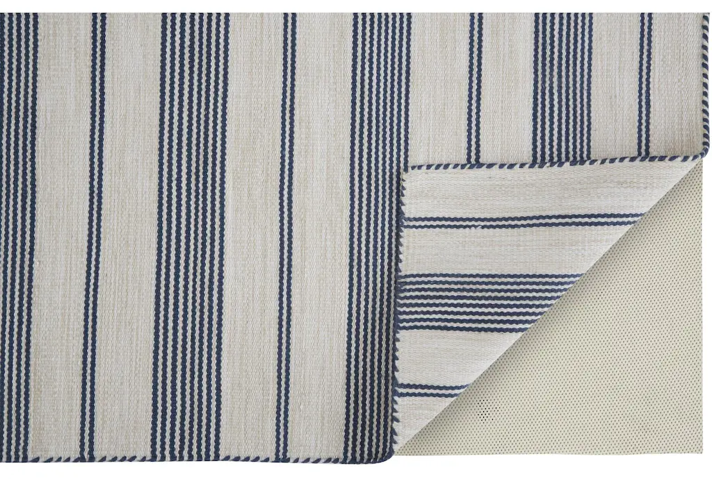 5'x8' Rug-Recycled Pet Fiber Navy Pin Stripes Rectangle Dhurrie | Indoor | Layering | Low Pile